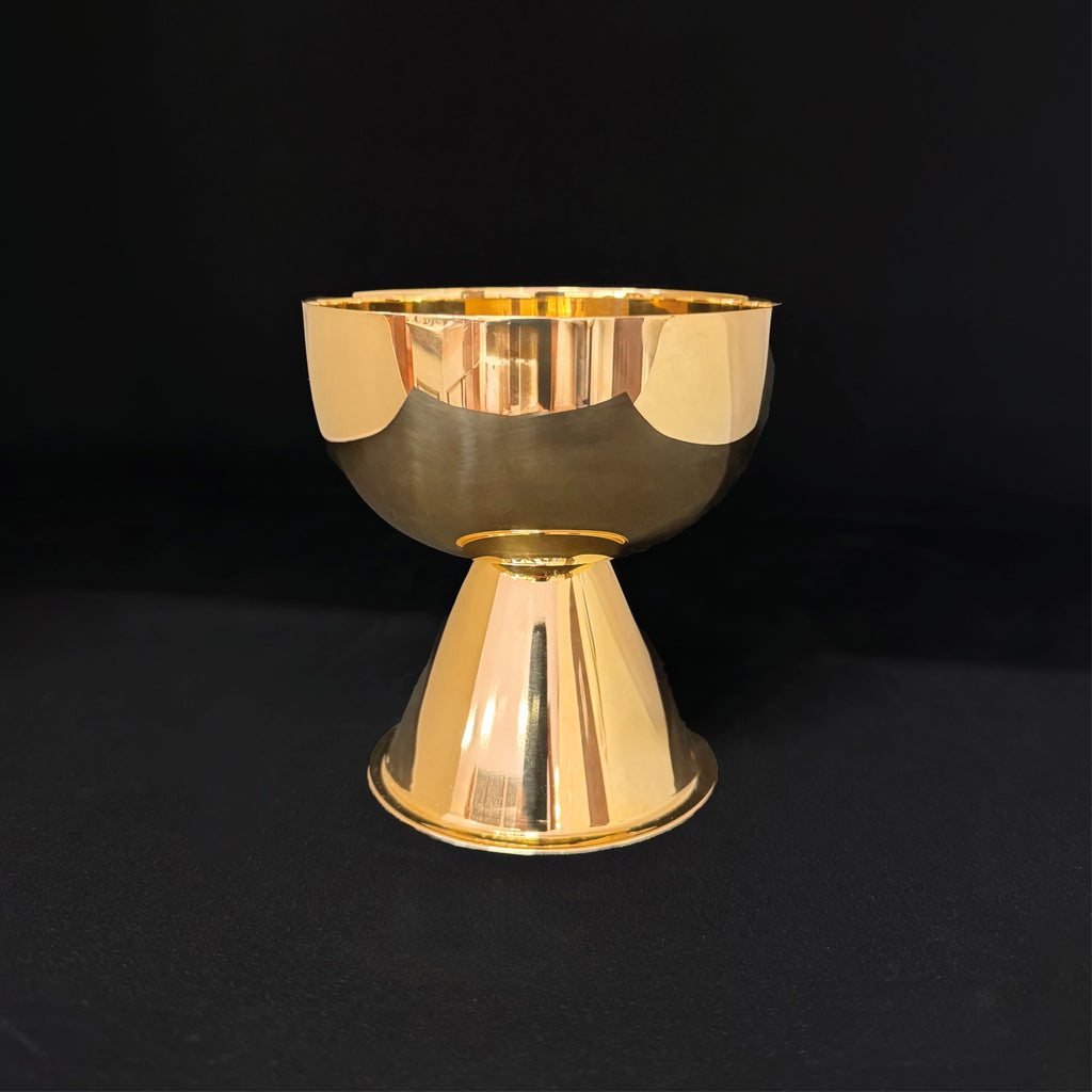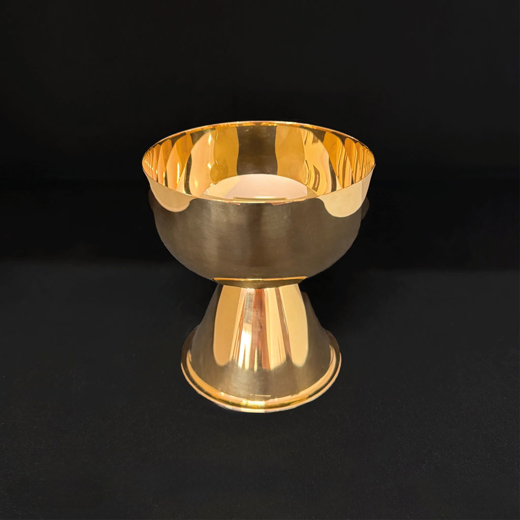 Essa é uma âmbula que prima pela nobre simplicidade litúrgica, ao mesmo tempo que confeccionada para oferecer um excelente custo-benefício na compra em quantidade. Tudo isso mantendo a indiscutível beleza e elegância, sendo a peça confeccionada em latão, nome dado à liga metálica de cobre e zinco de altíssima qualidade. Nessa versão, a âmbula é banhada a níquel.