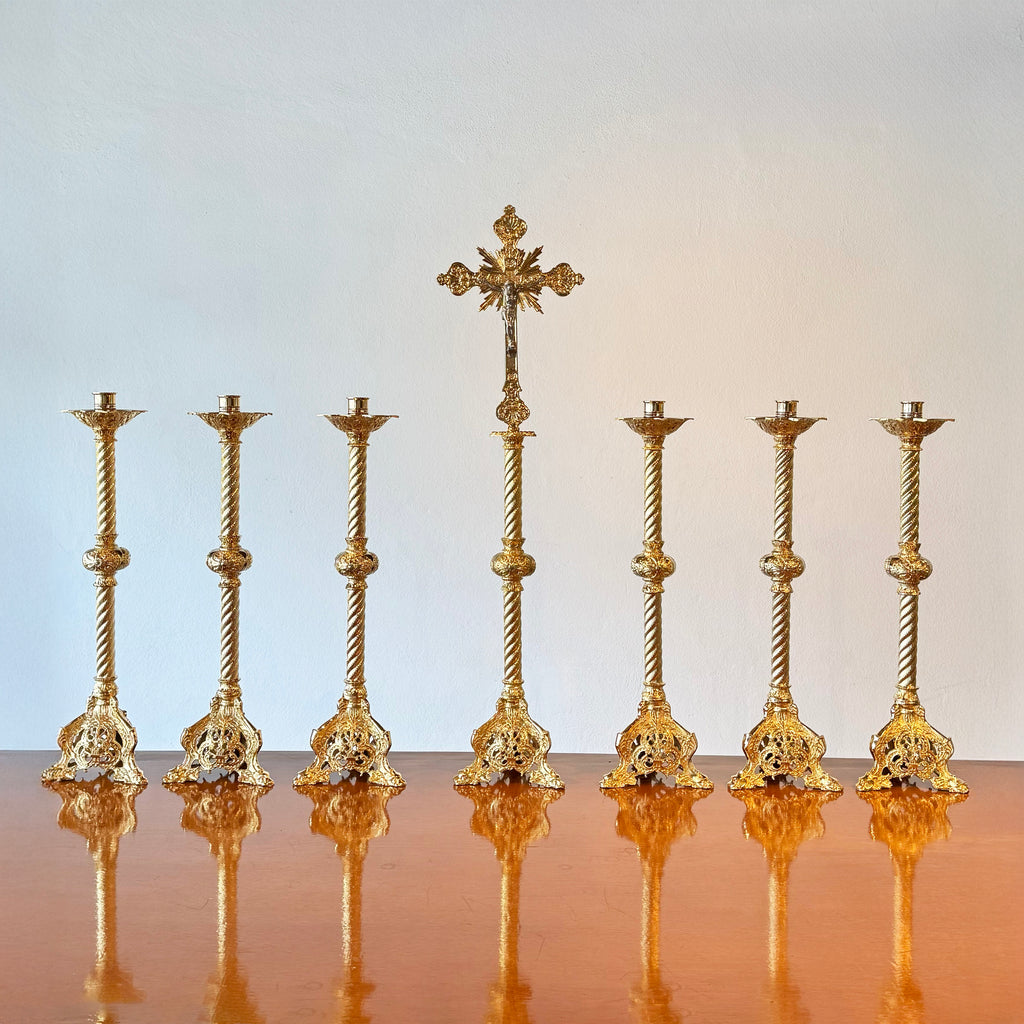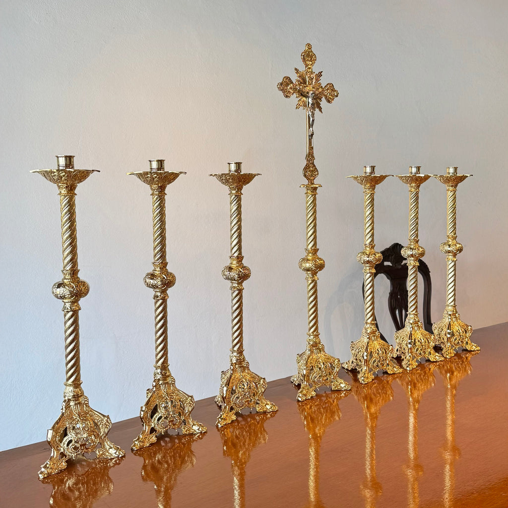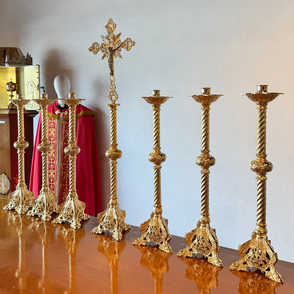 Dimensões Castiçal: 55cm de altura Cruz de Altar: 88cm de altura