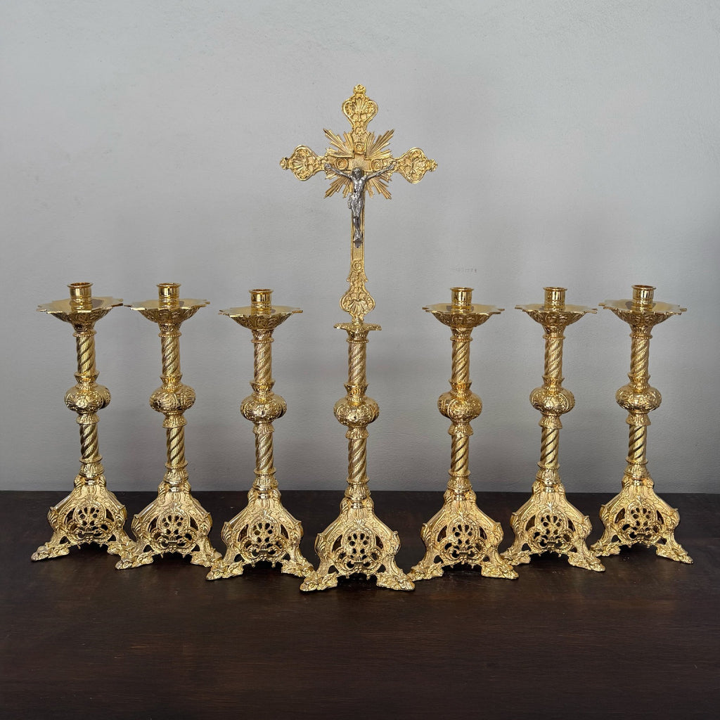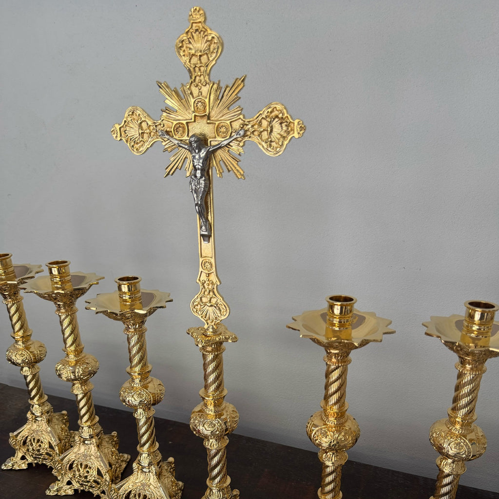 Dimensões Castiçal: 40cm de altura Cruz de Altar: 73cm de altura