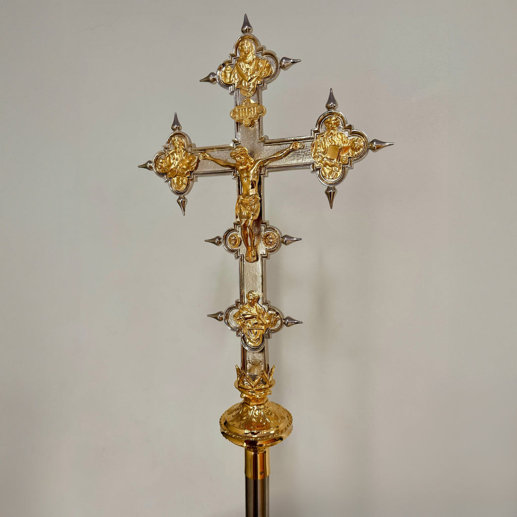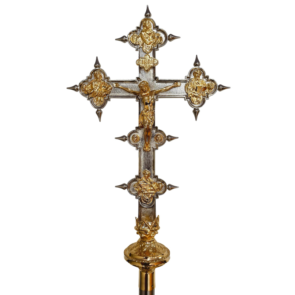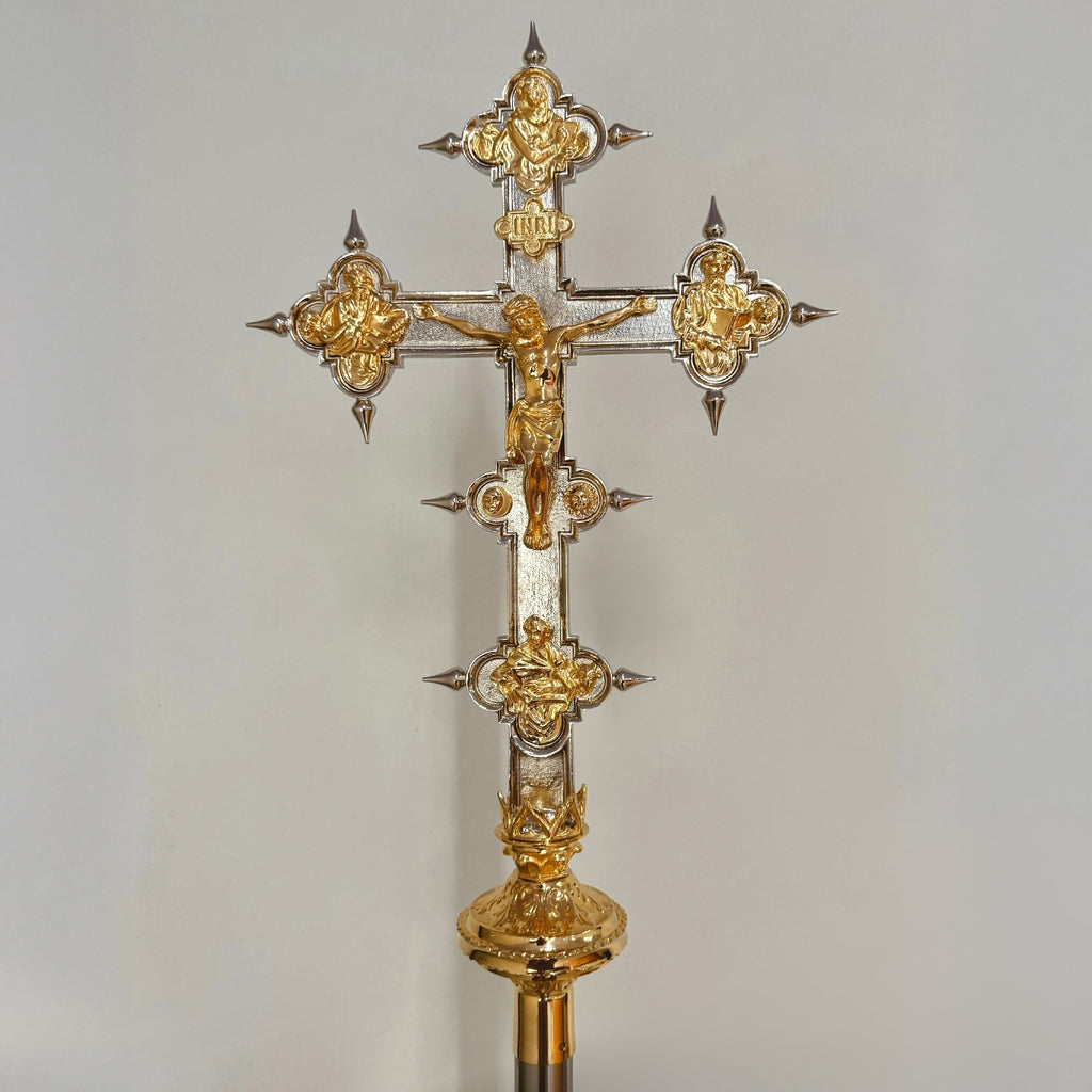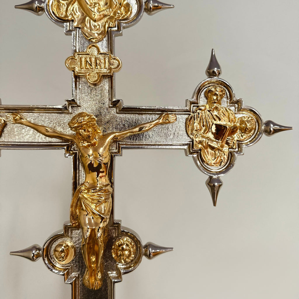 Cruz Processional Vaticana banhada a níquel - haste lisa