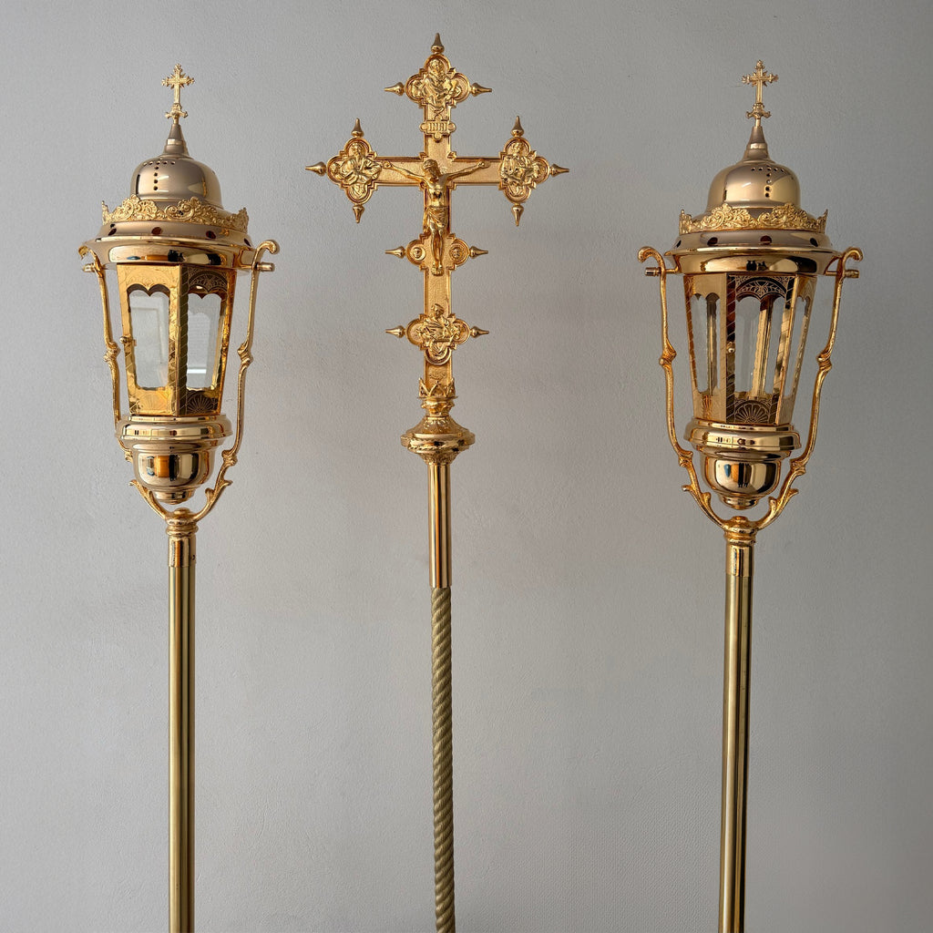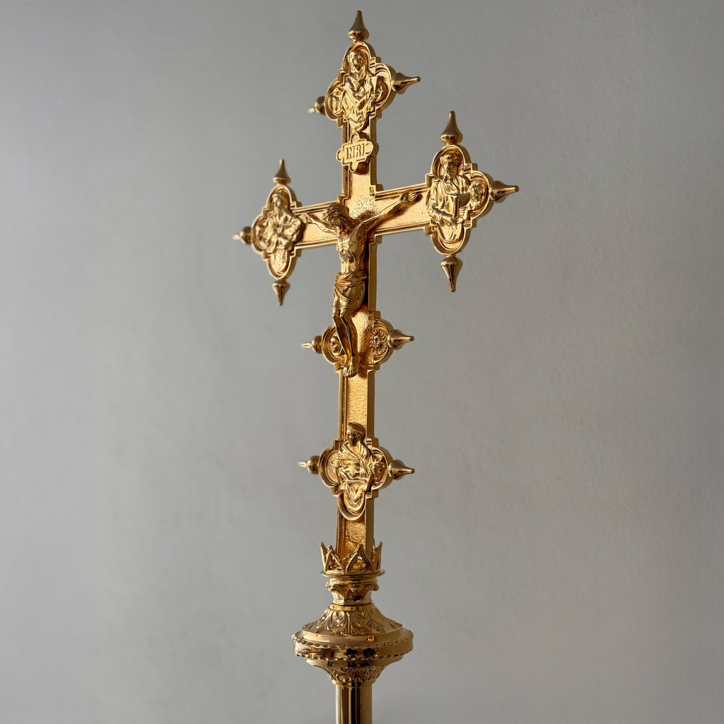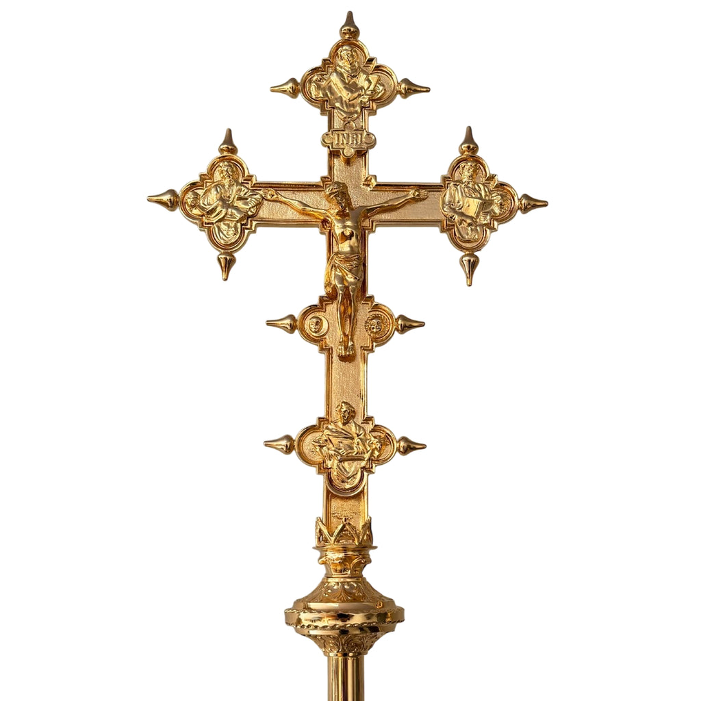 Cruz Processional Vaticana banhada a ouro - haste espiral