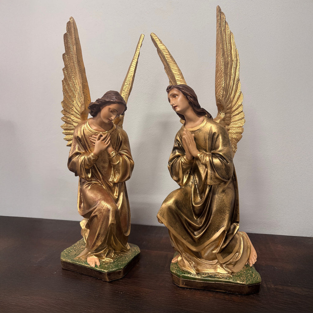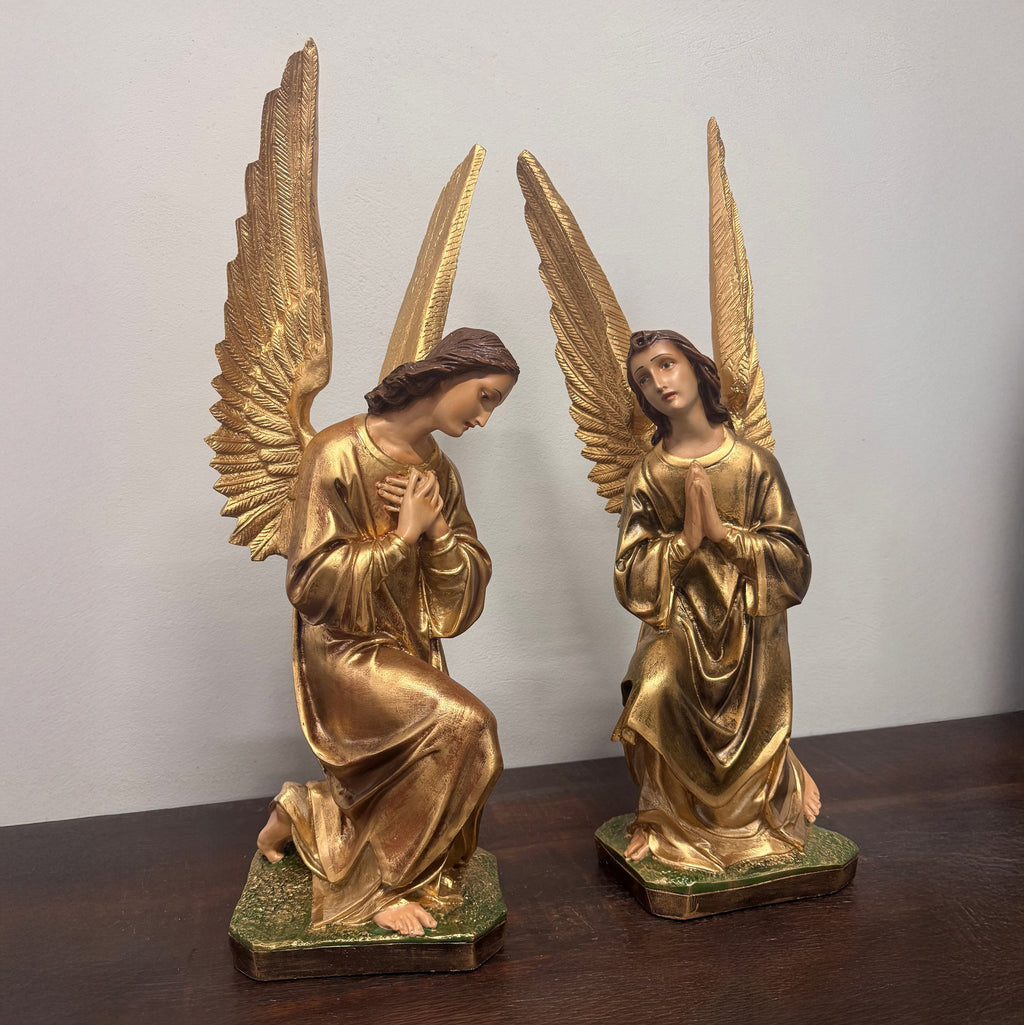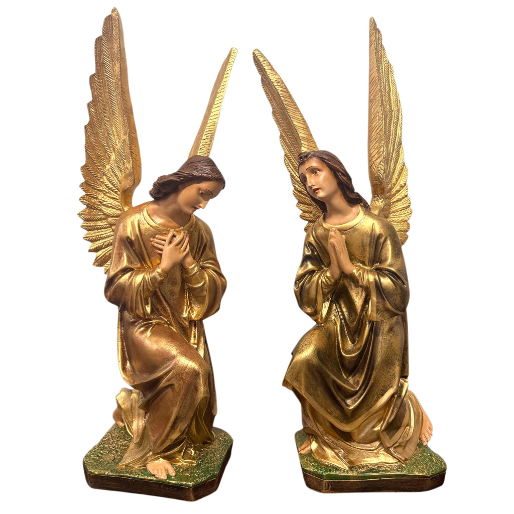 Esse é nosso belo e singelo par de Anjos Adoradores de 66cm. São peças ideais para serem colocadas ao lado do Sacrário ou mesmo diante do Santíssimo em exposição solene. Os anjos, revestidos de dalmáticas, evocam-nos a hierarquia angélica diante do Altíssimo e o serviço que os anjos prestam a Deus na Liturgia Celeste.