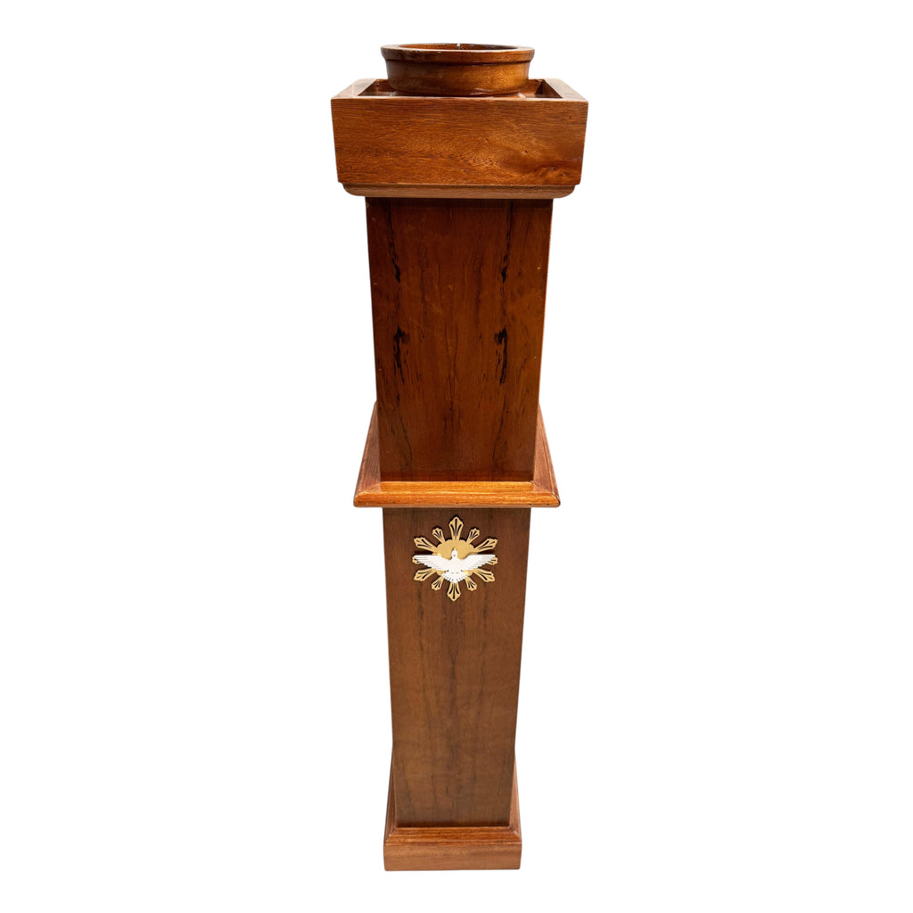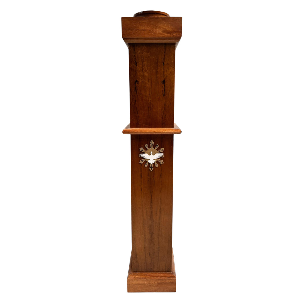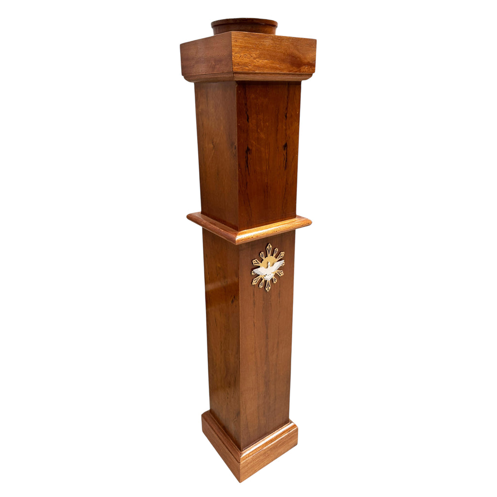 Este modelo de porta círio é feito em madeira maciça de jequitibá-rosa. Também chamado de "Tocheiro Pascal", o Porta Círio é o suporte para o Círio Pascal, símbolo de Nosso Senhor Ressuscitado, e é utilizado durante o Tempo Pascal junto ao Altar, no lado de onde se proclama o Evangelho. No restante do ano, permanece junto à Pia Batismal, no Batistério da Igreja. Também é utilizado nos ofícios litúrgicos do Batismo e das Encomendações.