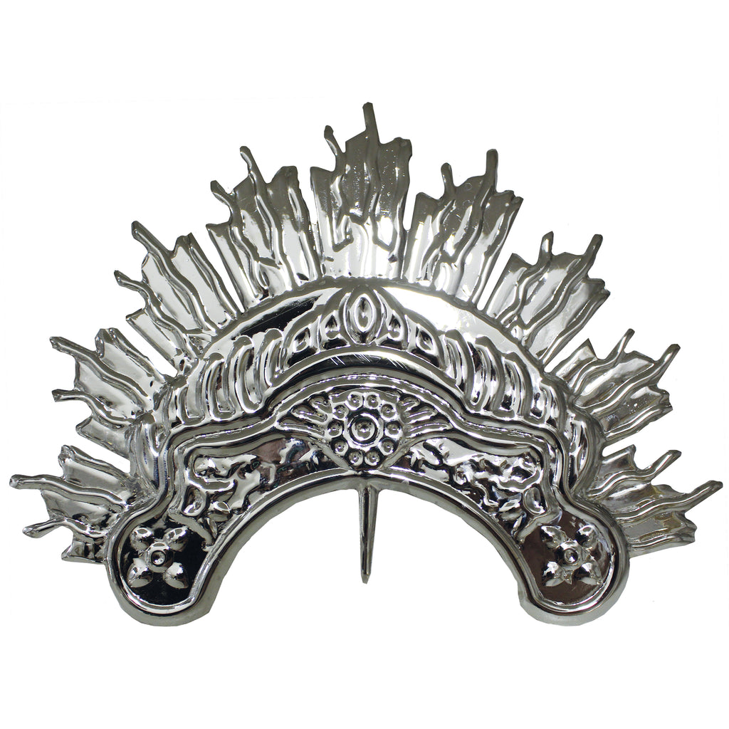 Belíssimo resplendor feito em chapa de metal de alta durabilidade e resistência, banhado a níquel.