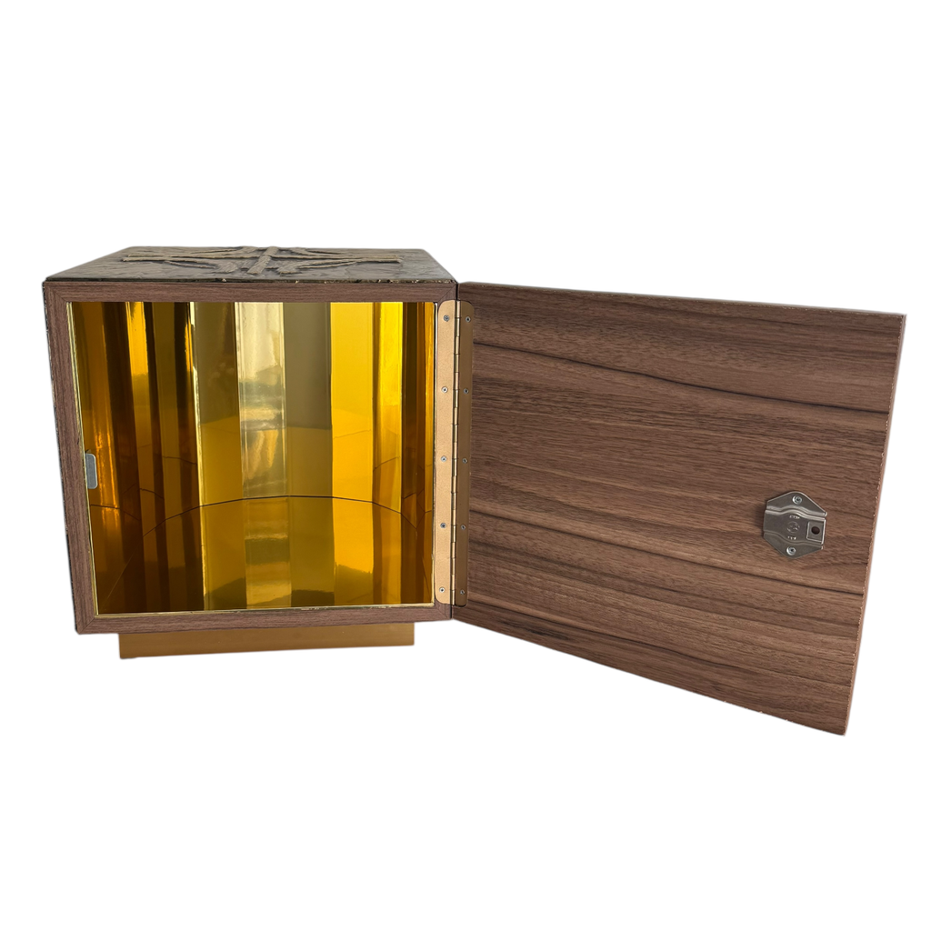 Este sacrário foi desenvolvido para oferecer um espaço digno e seguro para a reserva eucarística, conforme manda a tradição da Igreja. Seu design valoriza a sobriedade e a sacralidade do ambiente litúrgico, sendo compatível com diversos estilos de presbitério.
