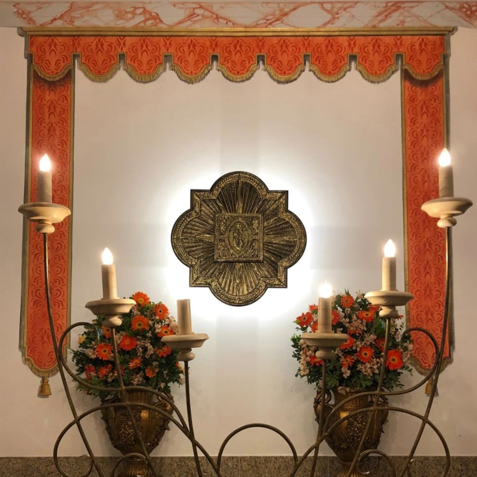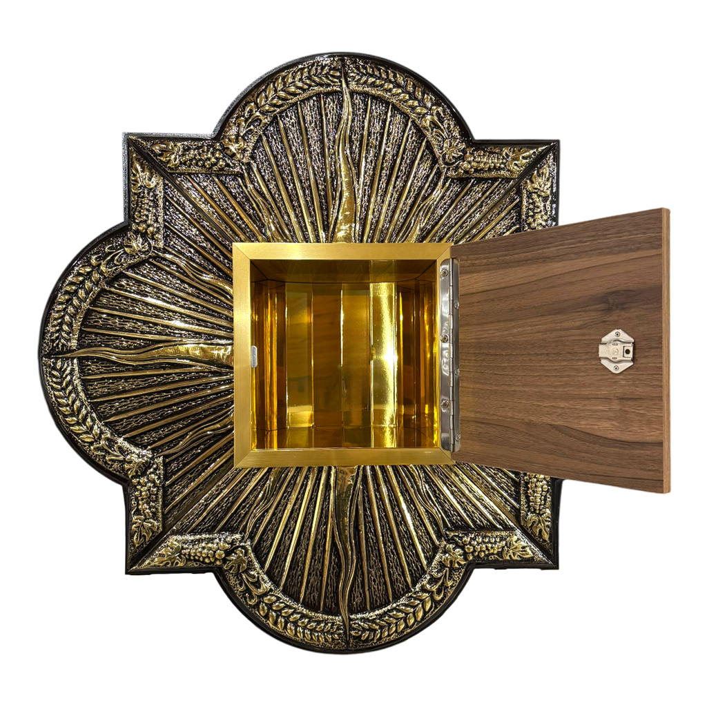 Este sacrário foi desenvolvido para oferecer um espaço digno e seguro para a reserva eucarística, conforme manda a tradição da Igreja. Este modelo foi projetado para ser embutido na parede, deixando somente sua parte frontal visível. Seu design valoriza a sobriedade e a sacralidade do ambiente litúrgico, sendo compatível com diversos estilos de presbitério.