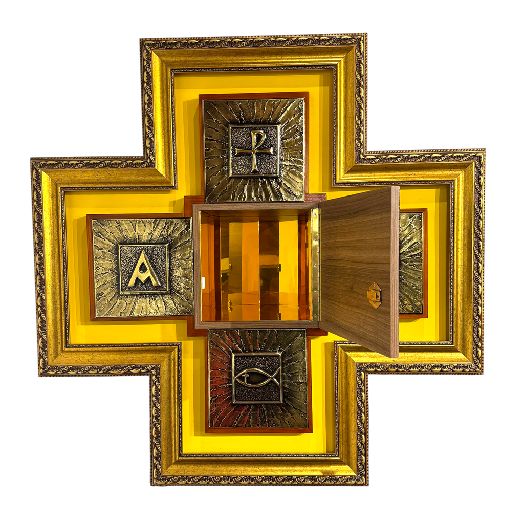 Este sacrário foi desenvolvido para oferecer um espaço digno e seguro para a reserva eucarística, conforme manda a tradição da Igreja. Este modelo foi projetado para ser embutido na parede, deixando somente sua parte frontal visível. Seu design valoriza a sobriedade e a sacralidade do ambiente litúrgico, sendo compatível com diversos estilos de presbitério.