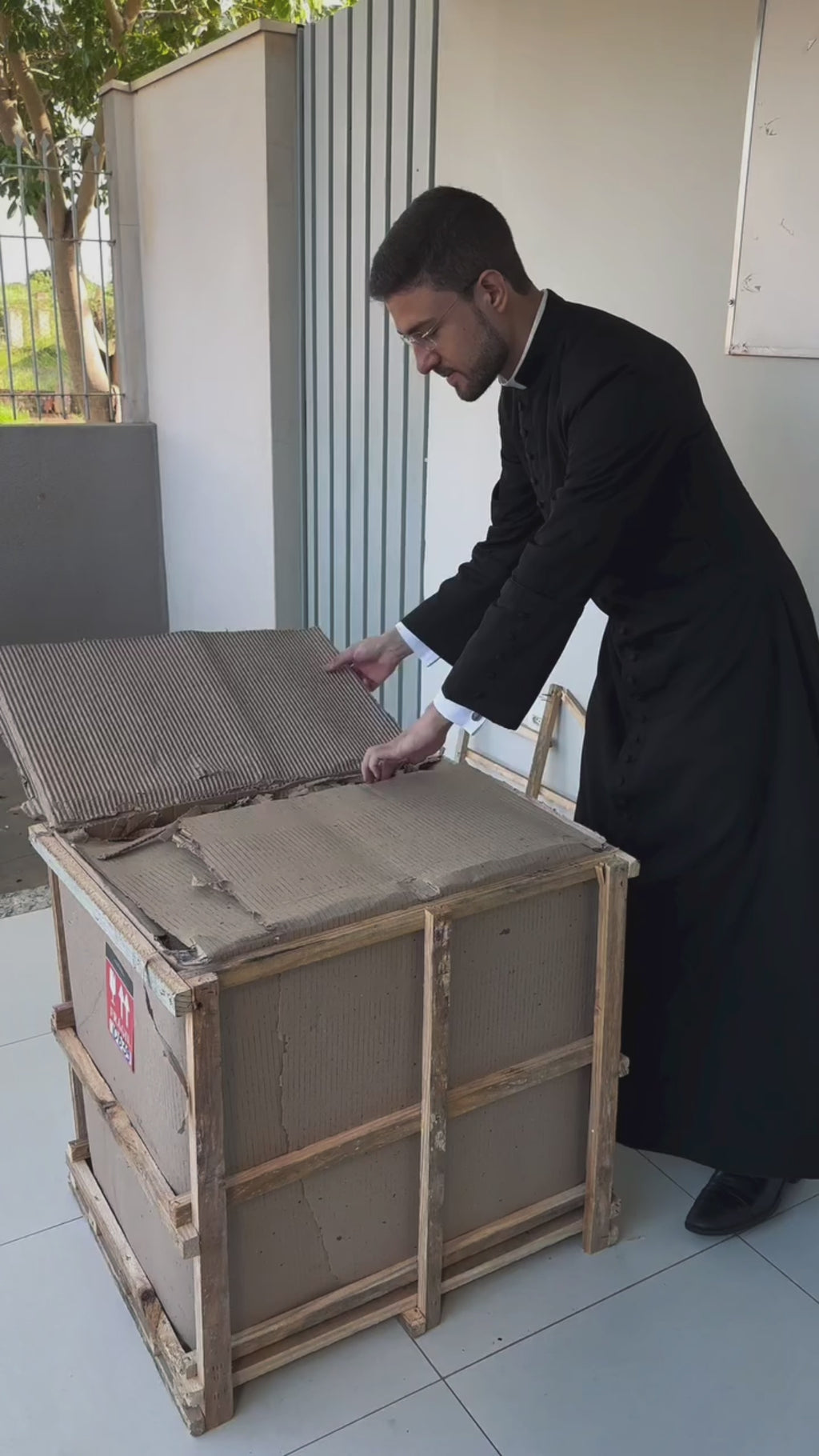 Esta é nossa Urna da Reposição, peça indispensável para guarnecer a reserva eucarística desde a noite de Quinta-feira Santa até o Sábado de Aleluia, conforme prescreve a Sagrada Liturgia, em um local preparado fora da igreja. Sobre a Urna, está o Cordeiro de Deus, símbolo de Cristo Ressuscitado e glorioso. Assentado sobre o livro dos sete selos, tal como descrito no Livro do Apocalipse, o Cordeiro manifesta-se como Aquele que venceu a morte e possui em Suas mãos o domínio da história e a plenitude dos mistérios divinos. Esta belíssima Urna realça a dignidade eucarística e leva os fiéis à devoção e piedade para com o Santíssimo Sacramento na noite da agonia do Senhor.