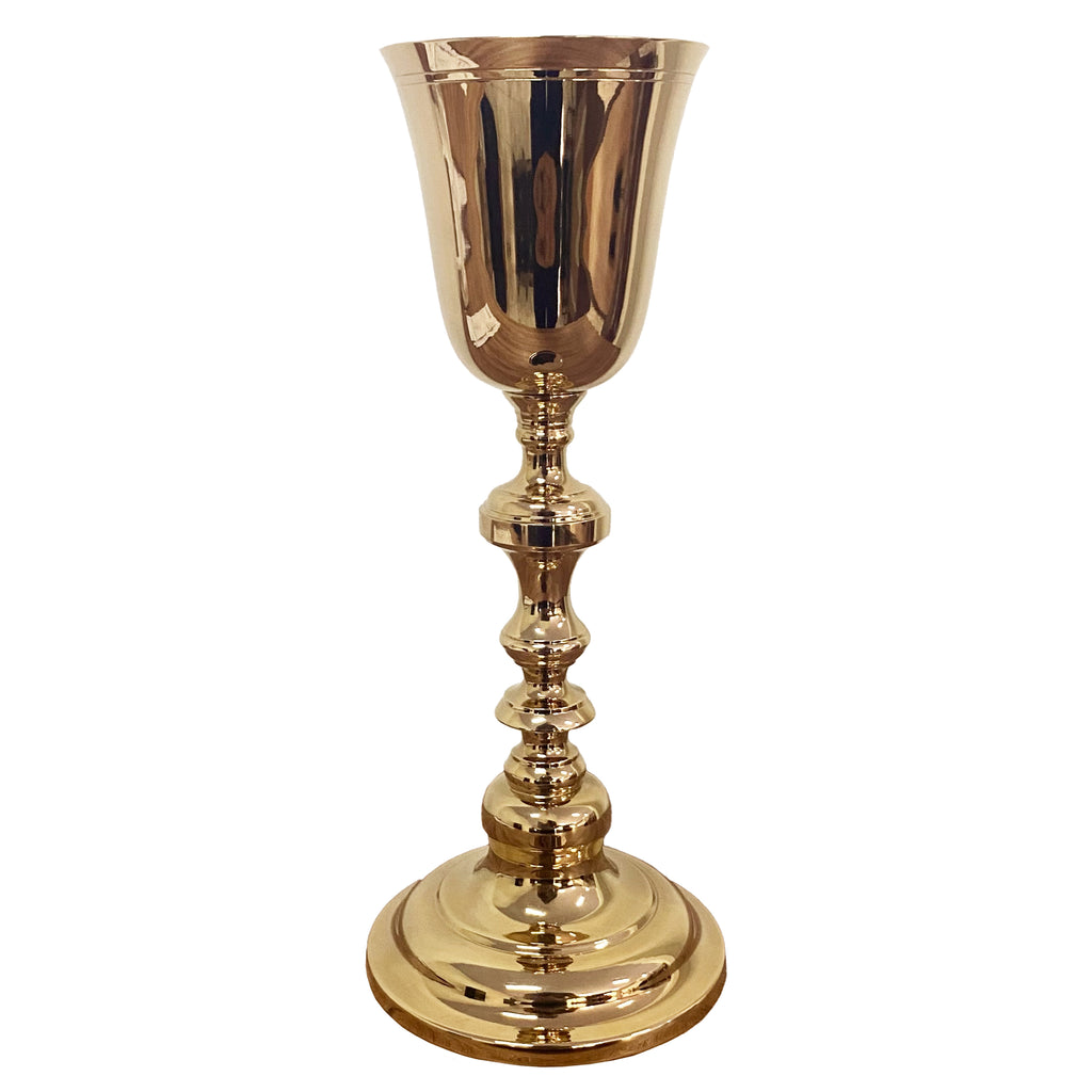 Este é um cálice de formato bastante tradicional, ideal para a celebração cotidiana da Santa Missa, ou para sua capela ou comunidade. Confeccionado em latão, nome dado à liga metálica de cobre e zinco de altíssima qualidade, esta versão é banhada a ouro 24 quilates.