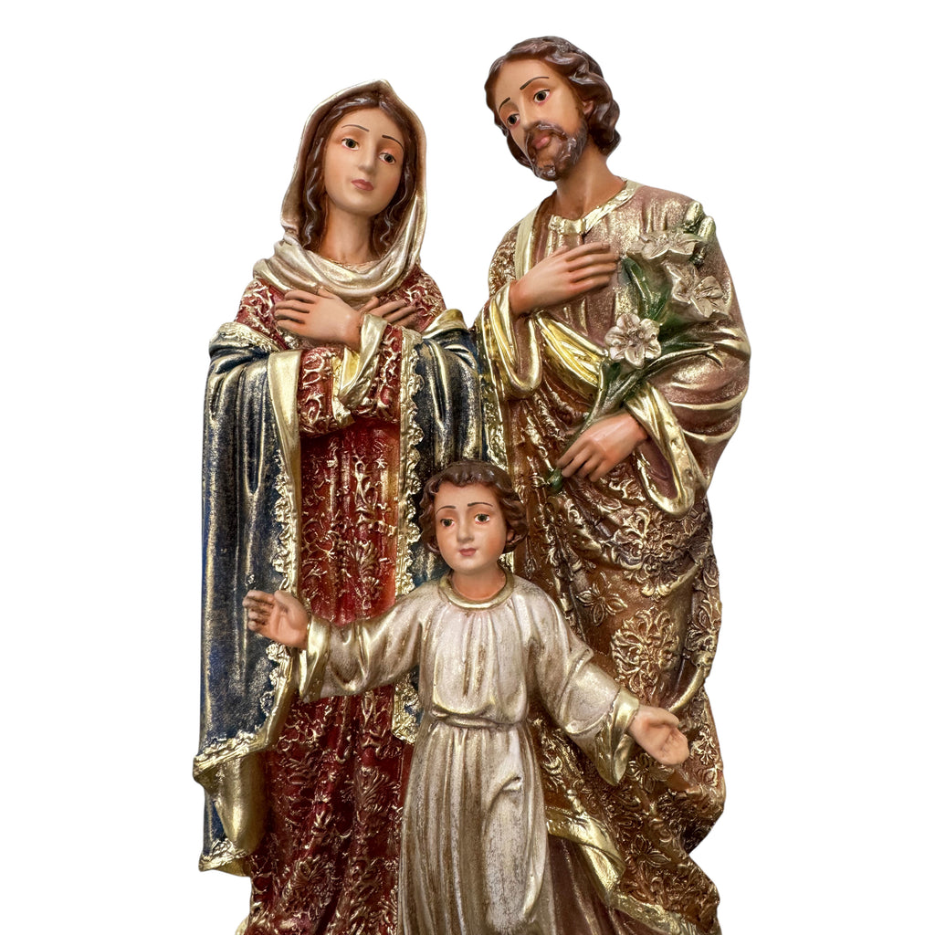 A imagem da Sagrada Família nos convida a contemplar o lar de Nazaré, onde Jesus cresceu sob os cuidados amorosos de Maria e José. A santidade da Sagrada Família se revela na simplicidade do cotidiano, onde amar a Deus e ao próximo se torna um só gesto. Em Nazaré, os gestos familiares de cuidado, trabalho e convivência foram também formas de culto e comunhão com Deus. Essa imagem é exemplo para todas as famílias católicas: sinal de fé, amor e entrega mútua. Ela inspira os lares a viverem sua missão com confiança, fidelidade e abertura ao plano de Deus, transformando o mundo pelo testemunho do amor familiar.
