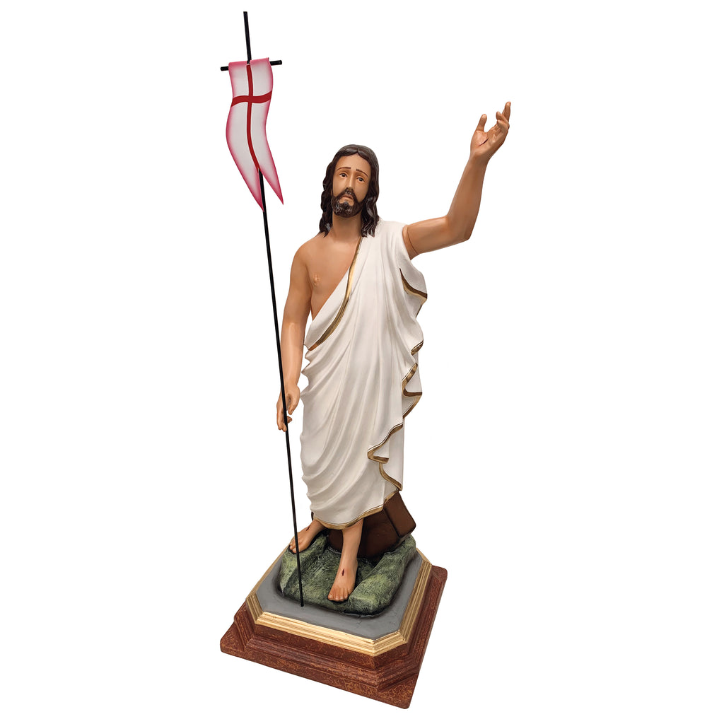 Esta é nossa imagem do Senhor Ressuscitado, própria para ser colocada no presbitério durante a celebração da Páscoa do Senhor ou mesmo no decorrer do Tempo Pascal. É uma bela imagem que nos mostra o Senhor revestido de sua glória e que, ao mesmo tempo, nos convida a partilhar de sua paz, aquela que emana de sua Ressurreição.