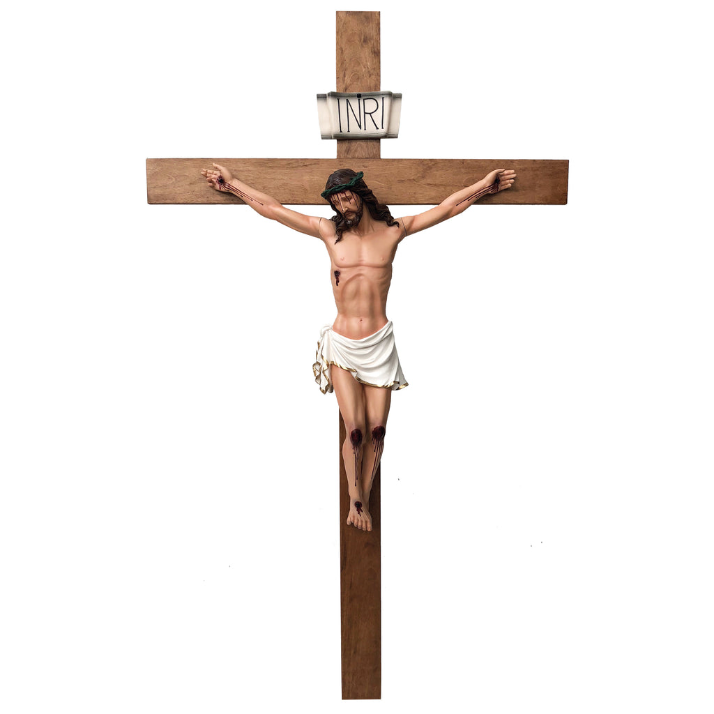 Esse é nosso Crucifixo especialmente concebido para colocar no presbitério da igreja, da capela ou no salão paroquial. A Cruz é feita em madeira maciça de Jequitibá Rosa. A imagem e a plaquinha INRI são feitas em resina de alta durabilidade e resistência.