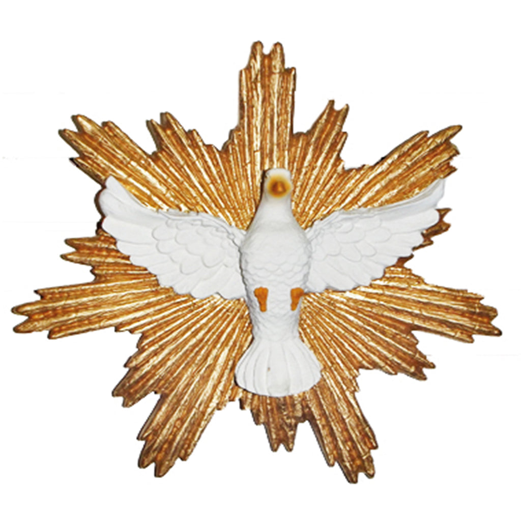 A imagem do Divino Espírito Santo nos recorda a Terceira Pessoa da Santíssima Trindade, que procede do Pai e do Filho, e que é Senhor e doador da vida. Representado sob a forma de uma pomba radiante, o Espírito Santo é o consolador perfeito, a luz dos corações, o hóspede das almas fiéis e o fogo divino que transforma e santifica. Na história da salvação, é Ele quem aplica em cada alma os méritos da Cruz de Cristo. Foi enviado aos Apóstolos no Cenáculo no dia de Pentecostes, inaugurando a missão evangelizadora da Igreja. É o Espírito quem move os corações à conversão, quem ilumina a inteligência e fortalece a vontade no caminho da graça.