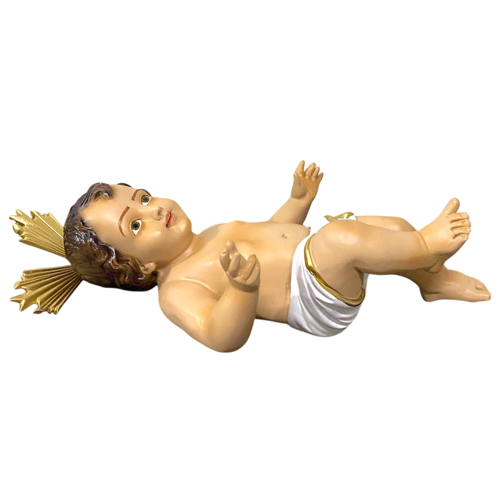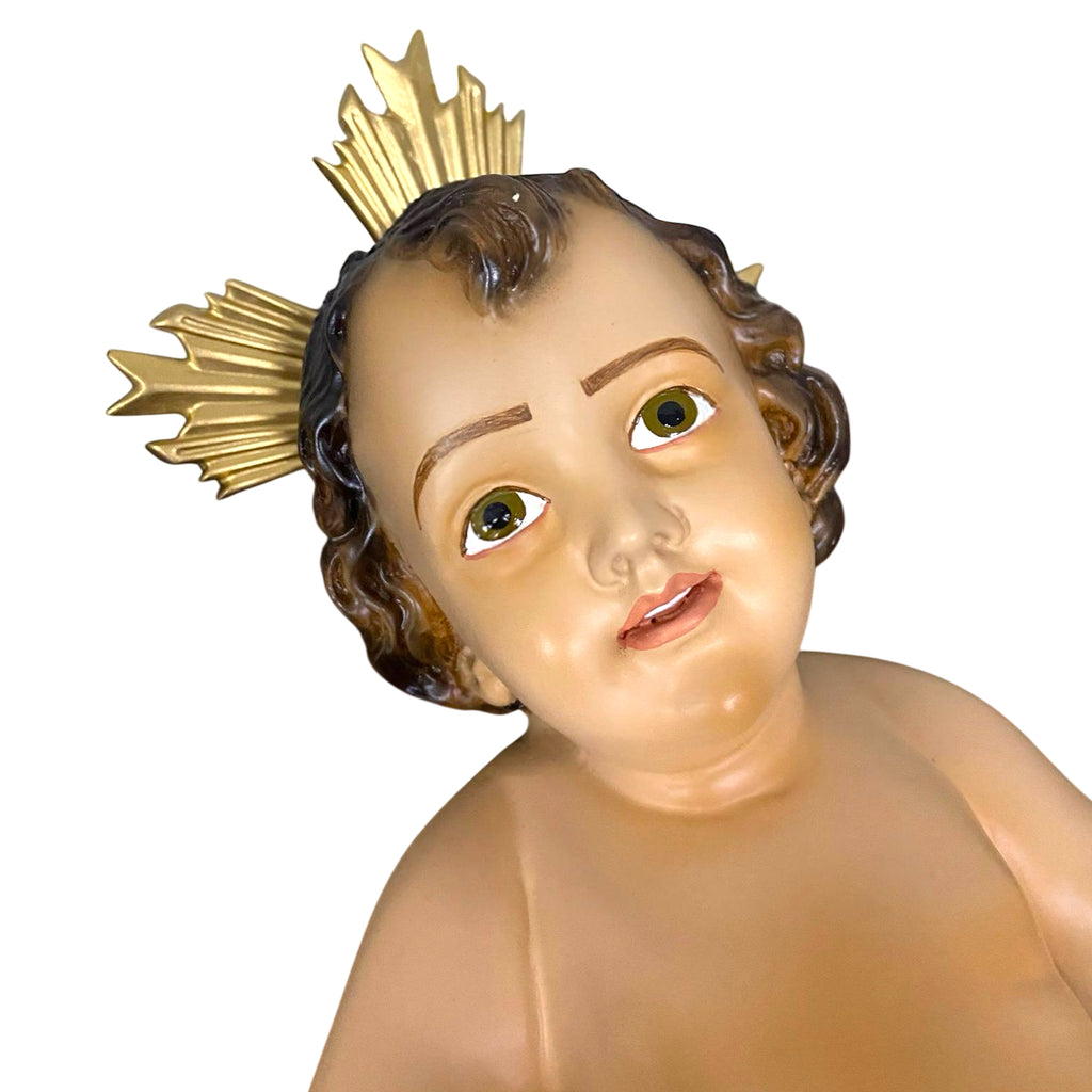 Esta é nossa piedosa imagem do Menino Jesus confeccionada em resina de alta durabilidade e resistência, além de pintada à mão. Com 41cm, a imagem já carrega um belo resplendor dourado, conhecido tradicionalmente como "potências".
