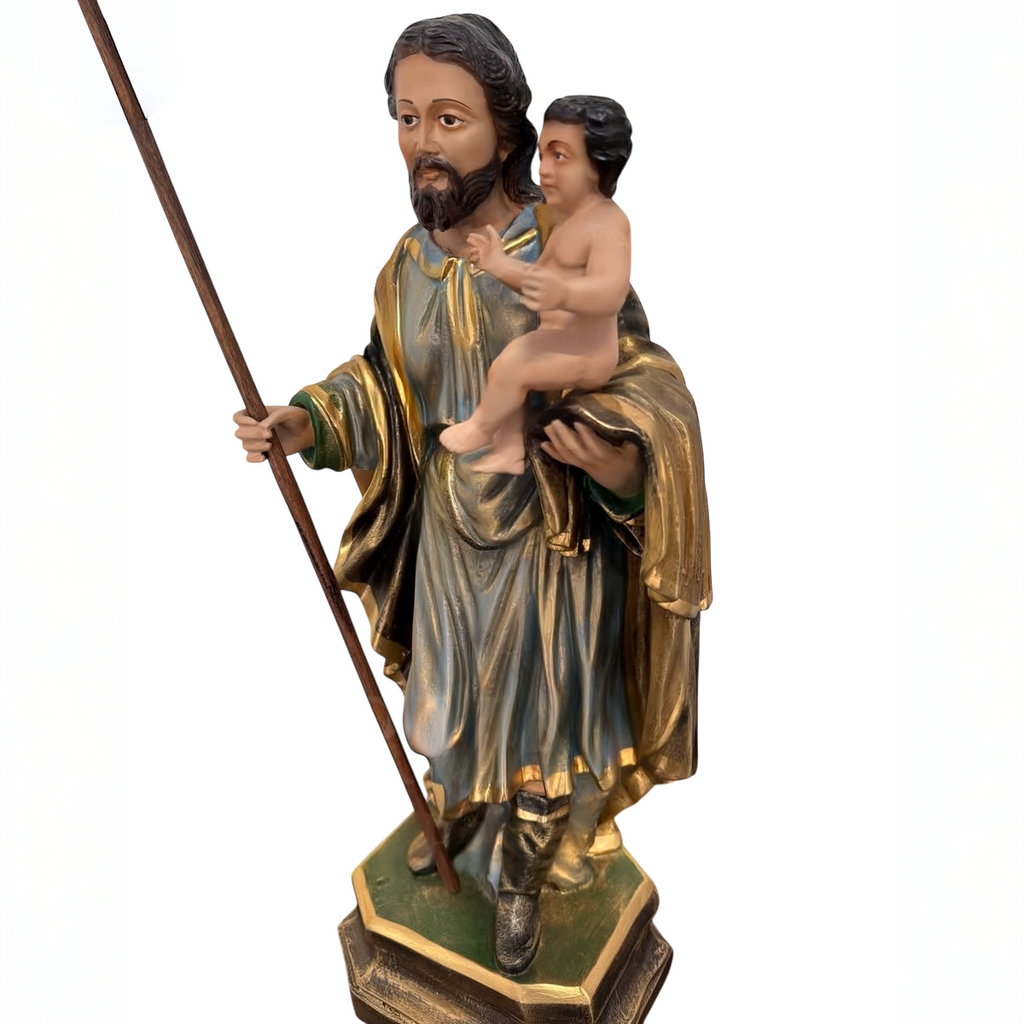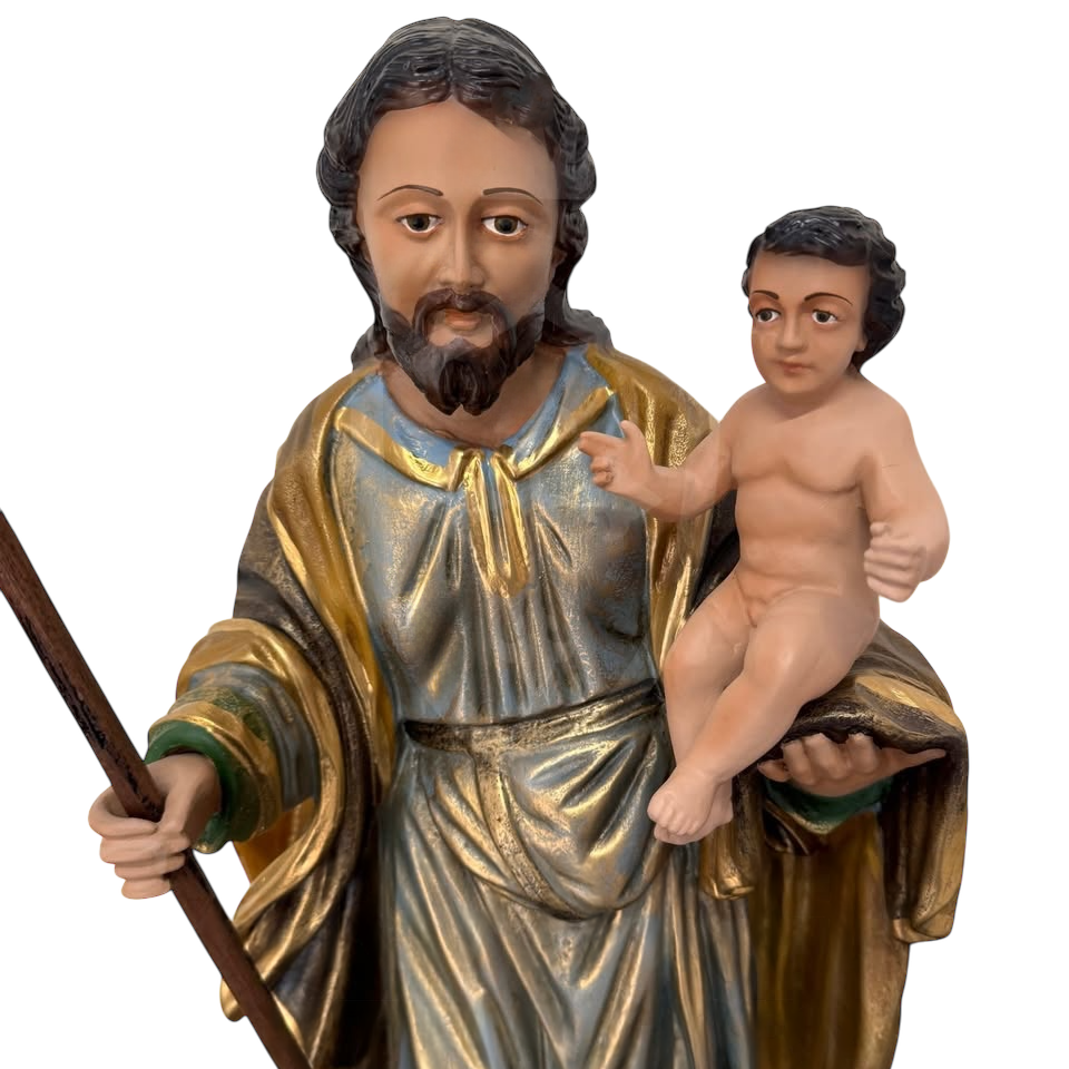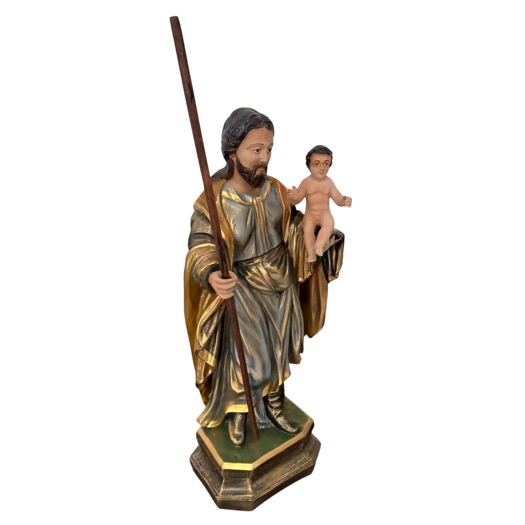 Essa é nossa singela imagem de São José de Botas. Medindo 60cm, é a imagem perfeita para sua devoção pessoal ao Pai Adotivo de Jesus. A origem da peculiar representação de São José de Botas remonta tradicionalmente aos bandeirantes na história do Brasil, que, por calçarem uma bota rústica, fizeram a imagem de São José com o mesmo acessório, a quem recorriam por proteção em suas viagens.