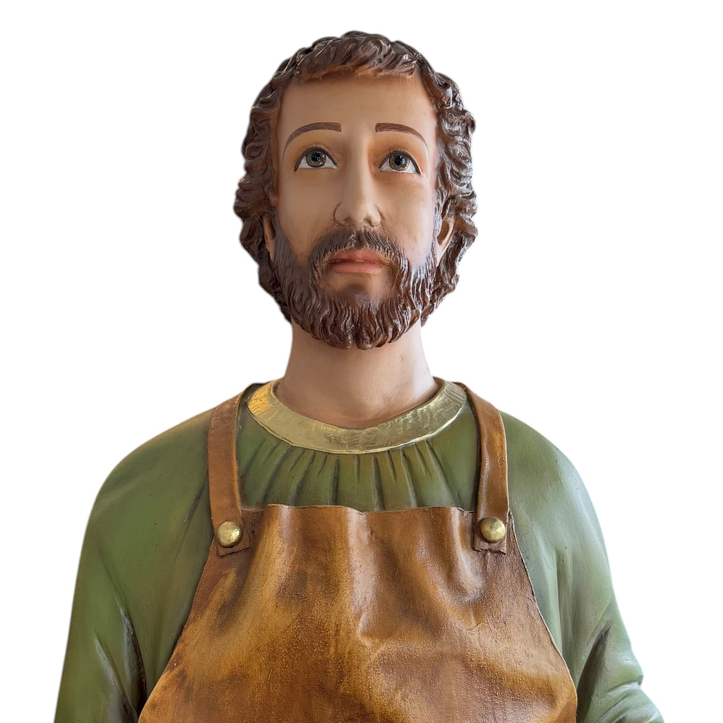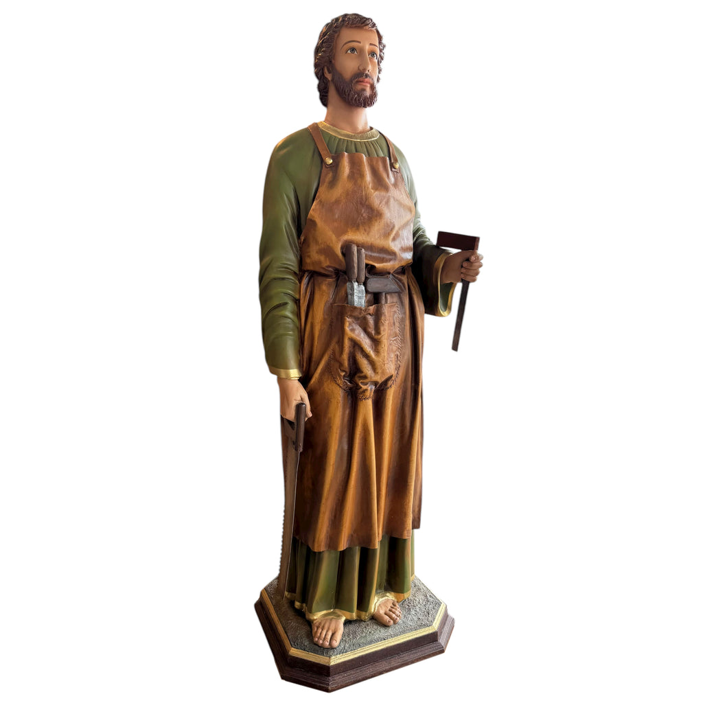 Esta é nossa imagem de São José Operário, belíssimo título dado ao Pai Adotivo de Jesus que ressalta a dignidade do trabalho justo de todo ser humano. Tal título foi dado solenemente pelo Papa Pio XII que, em 1955, elevou a comemoração civil do trabalho à celebração do grande carpinteiro São José. Invoquemos sempre o Guardião da Sagrada Família como nosso socorro em meio às labutas e aos desafios que possam surgir em nossos trabalhos e peçamos também que ele interceda a todos que buscam a dignidade de um emprego por melhores condições de vida.