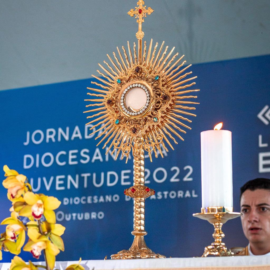 O Ostensório Catedral é uma peça repleta de símbolos em sua composição: em sua base, apresentam-se elementos relativos à Paixão do Senhor, como a Cruz, a Sagrada Coroa de Espinhos, os Três Cravos, a Escada e a Lança. Ao redor da Hóstia, encontram-se elementos em formato de flor-de-lis e motivos eucarísticos como o trigo e a uva. Nesta versão, a Custódia é ainda ricamente ornamentada com 44 pedras, entre tons de azul, roxo, cristal e vermelho, o que realça ainda mais a dignidade e a majestade da Eucaristia.