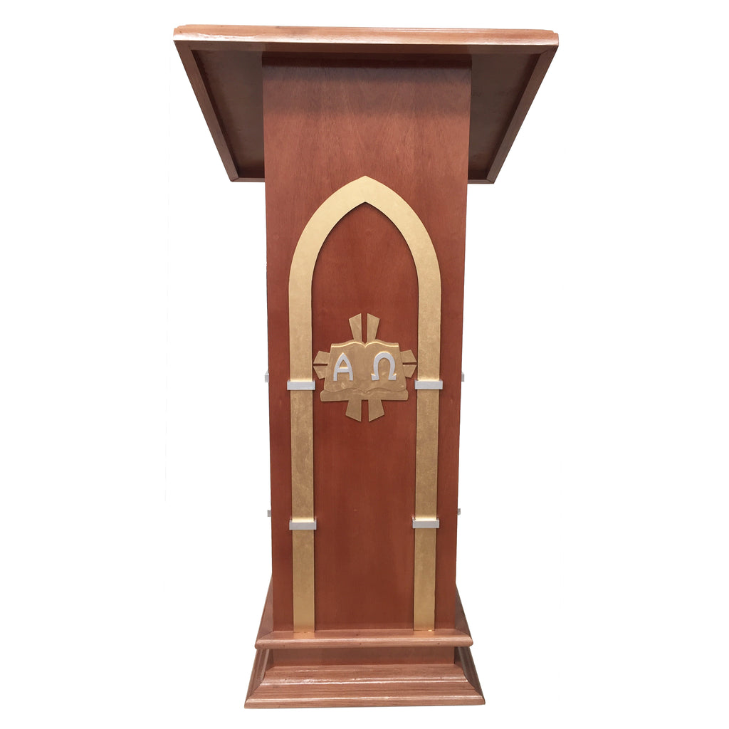 O Ambão, também chamado de Mesa da Palavra, é o lugar sagrado destinado ao anúncio da Palavra de Deus. Nele ressoa a voz da Igreja que proclama, com autoridade e solenidade, as Escrituras Sagradas, ecoando o Verbo eterno que se fez carne. É imagem da montanha bíblica, de onde Deus fala ao seu povo, e também símbolo da pedra do sepulcro vazia, testemunha da Ressurreição, de onde parte a alegre notícia do Evangelho. Assim, o Ambão ocupa lugar próprio no espaço litúrgico, digno e distinto, para que a Palavra seja ouvida com atenção e veneração.