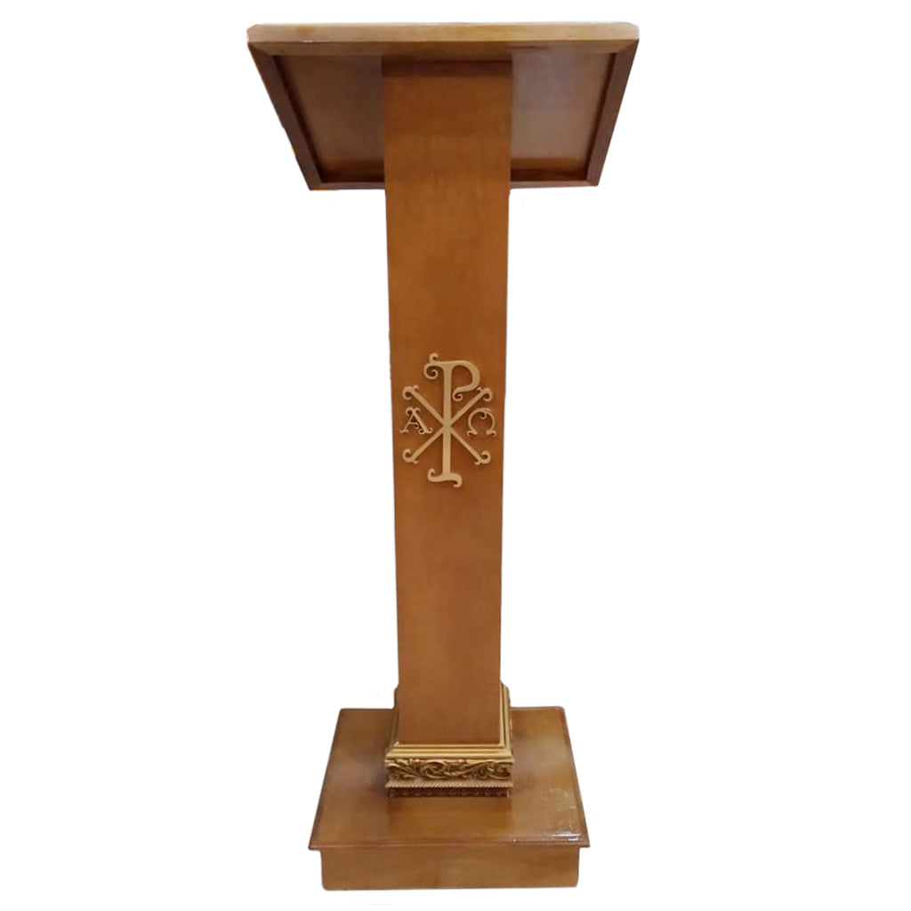O Ambão, também chamado de Mesa da Palavra, é o lugar sagrado destinado ao anúncio da Palavra de Deus. Nele ressoa a voz da Igreja que proclama, com autoridade e solenidade, as Escrituras Sagradas, ecoando o Verbo eterno que se fez carne. É imagem da montanha bíblica, de onde Deus fala ao seu povo, e também símbolo da pedra do sepulcro vazia, testemunha da Ressurreição, de onde parte a alegre notícia do Evangelho. Assim, o Ambão ocupa lugar próprio no espaço litúrgico, digno e distinto, para que a Palavra seja ouvida com atenção e veneração.