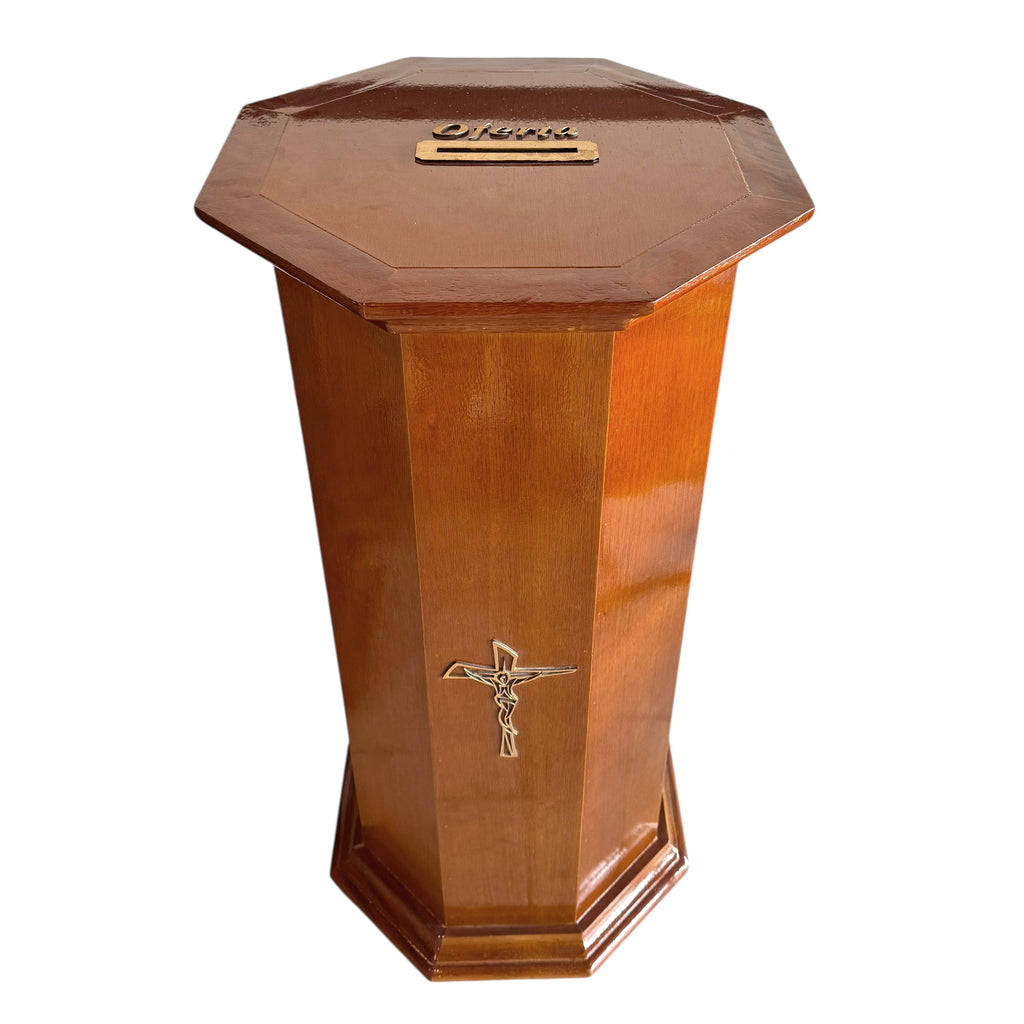 O Gazofilácio Oitavado é um móvel sacro destinado a receber as doações e ofertas feitas com generosidade e fé pelos fiéis. Do grego gazofulákion, seu nome significa “guarda do tesouro.” Pode ficar em um local fixo na igreja ou ser movimentado conforme a necessidade.