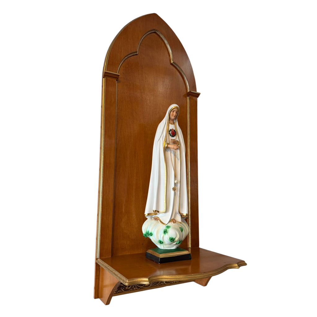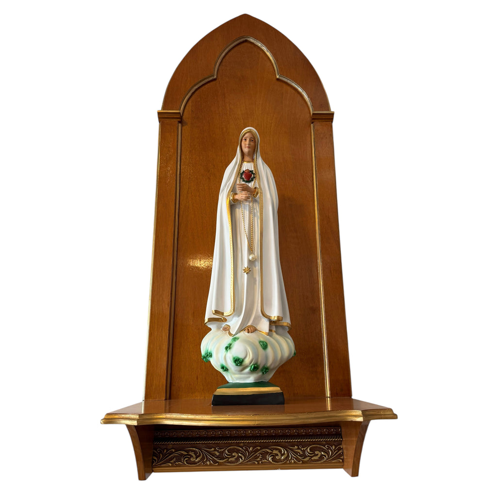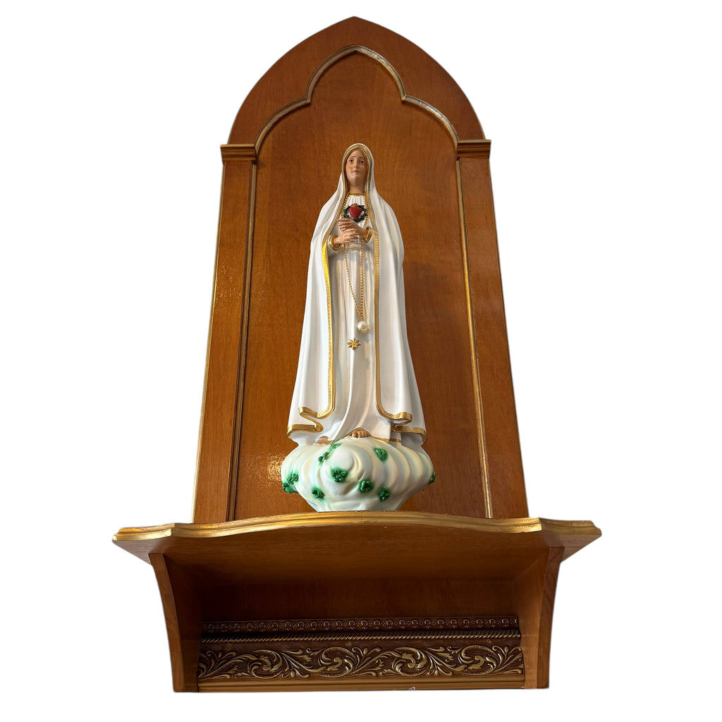 Esta é uma peça ideal para compor o espaço celebrativo, seja na nave da igreja ou no presbitério, e até mesmo na sacristia da Paróquia, para receber sobre si uma imagem sacra.