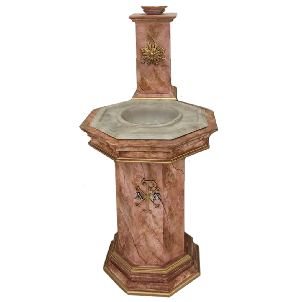 Pia Batismal com Porta Círio Embutido - com Pintura Marmorizada