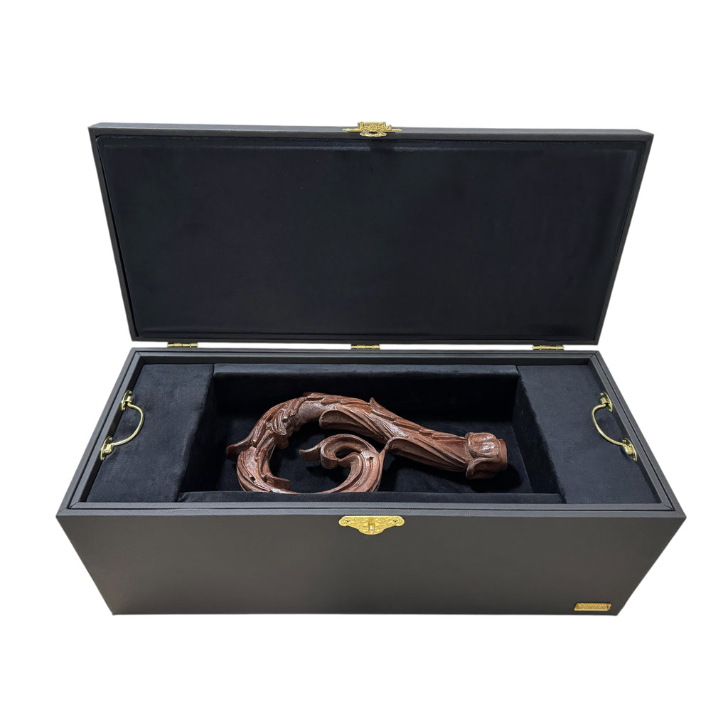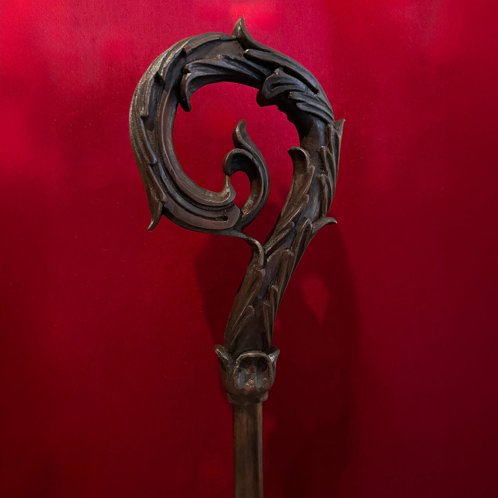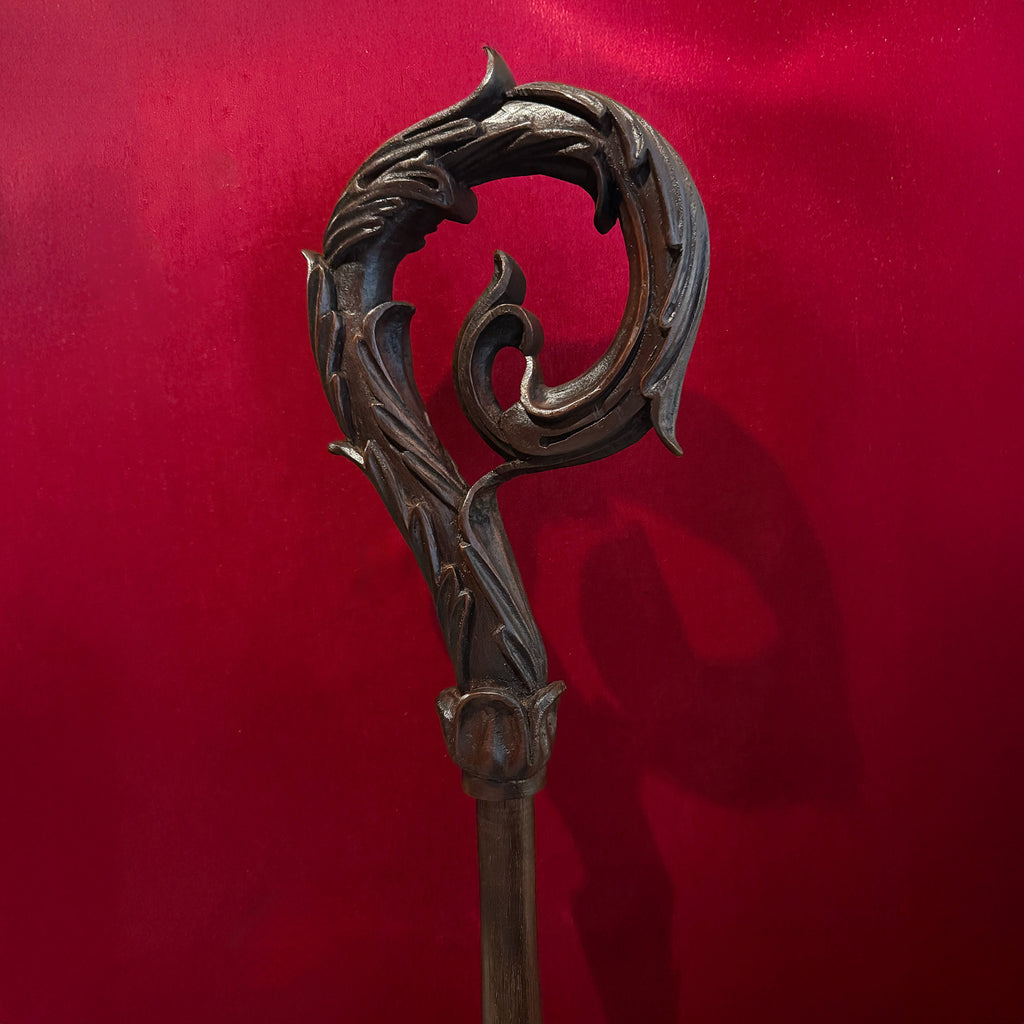 O Báculo Entalhado é uma belíssima insígnia da Ordem Episcopal, todo esculpido à mão em madeira de cedro. Possui uma voluta rica em movimento e detalhes, com inspiração barroca. É sem dúvida uma peça digna do Terceiro Grau da Ordem e que, ao mesmo tempo, oferece um excelente custo-benefício.