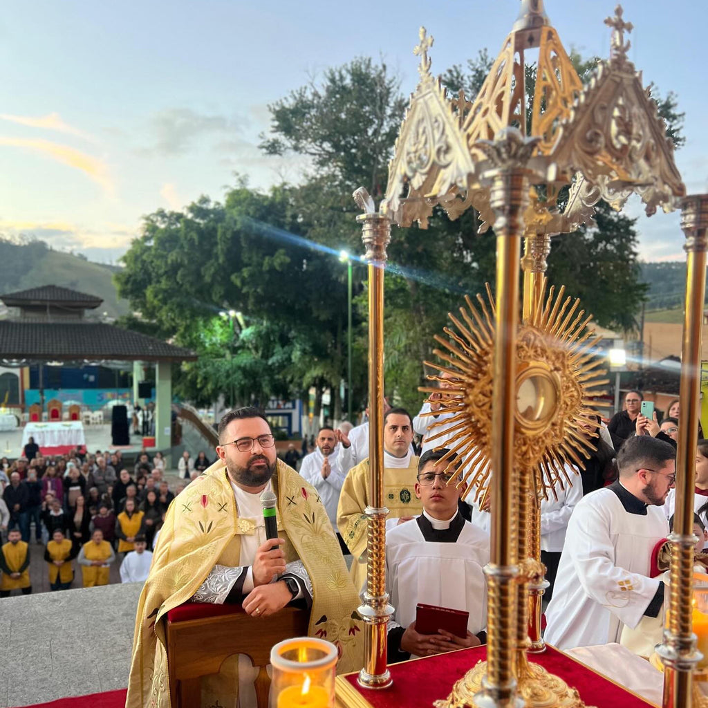 O Baldaquino apresenta-se como uma peça de grande imponência, destinada a expor, com máxima solenidade, o Santíssimo Sacramento. Sua origem remonta ao antigo dossel de estado, tradicionalmente erguido sobre o altar-mor ou sobre o trono real. Uma antiga norma litúrgica prescrevia que todo altar-mor fosse coroado por um baldaquino, embora tal disposição seja observada apenas em algumas poucas e venerandas igrejas italianas, como a própria Basílica de São Pedro, no Vaticano. Com o tempo, passou-se igualmente a denominar de baldaquino o trono eucarístico, em razão da semelhança de sua forma e por conservar o mesmo significado primeiro: manifestar, por meio de um sinal visível, a mais alta honra à majestade da Eucaristia.