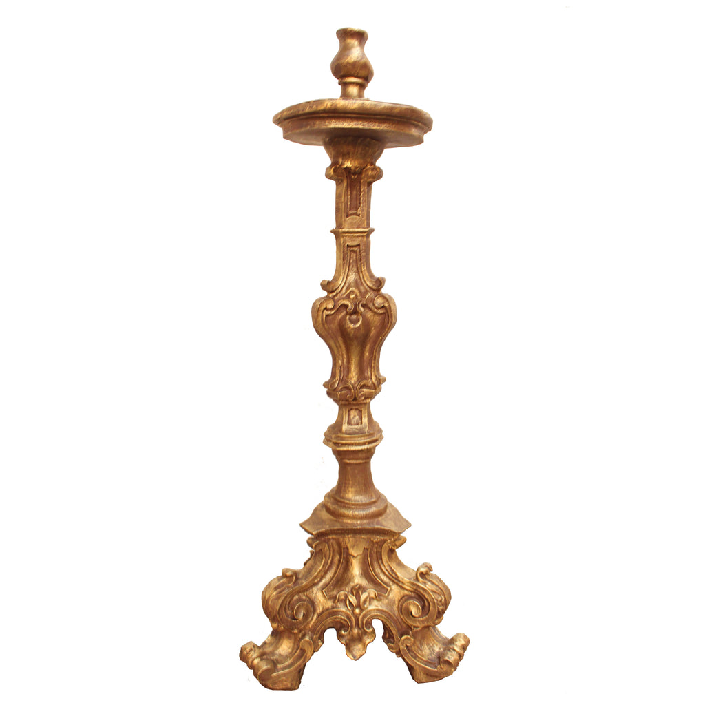Esse é um castiçal de estilo barroco, feito em resina de alta resistência. Pode ser utilizado sobre o Altar ou ao lado de uma imagem devocional.