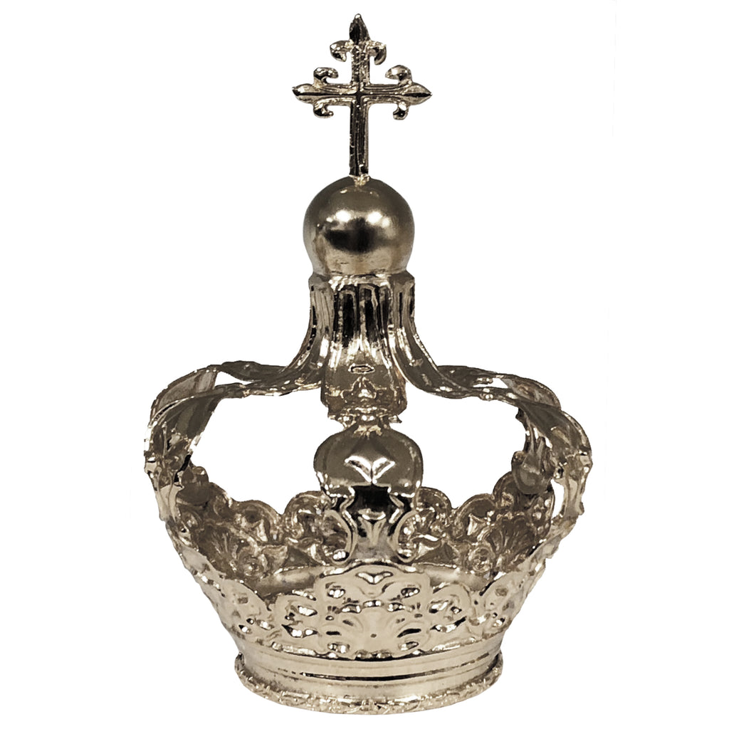 Esta é uma belíssima coroa feita em chapa de metal de alta durabilidade e banhada a níquel. As coroas para imagens sacras são sinais visíveis da participação plena que os santos possuem na glória de Cristo, Rei do Universo. Desde as palavras do Apocalipse, que contemplam a Virgem Maria como “a mulher vestida de sol, tendo a lua sob os pés e sobre a cabeça uma coroa de doze estrelas” (Ap 12,1), a tradição católica compreendeu a coroação dos santos como gesto de veneração e fé: não se trata apenas de enfeite, mas de proclamação solene da realeza espiritual de quem se fez humilde servo de Deus e hoje intercede por nós no Céu.