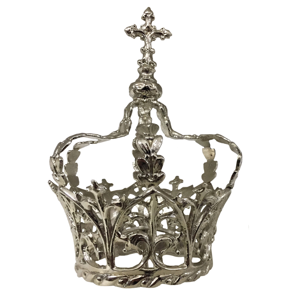 Esta é uma belíssima coroa feita em liga metálica fundida de alta durabilidade e banhada a níquel. As coroas para imagens sacras são sinais visíveis da participação plena que os santos possuem na glória de Cristo, Rei do Universo. Desde as palavras do Apocalipse, que contemplam a Virgem Maria como “a mulher vestida de sol, tendo a lua sob os pés e sobre a cabeça uma coroa de doze estrelas” (Ap 12,1), a tradição católica compreendeu a coroação dos santos como gesto de veneração e fé: não se trata apenas de enfeite, mas de proclamação solene da realeza espiritual de quem se fez humilde servo de Deus e hoje intercede por nós no Céu.