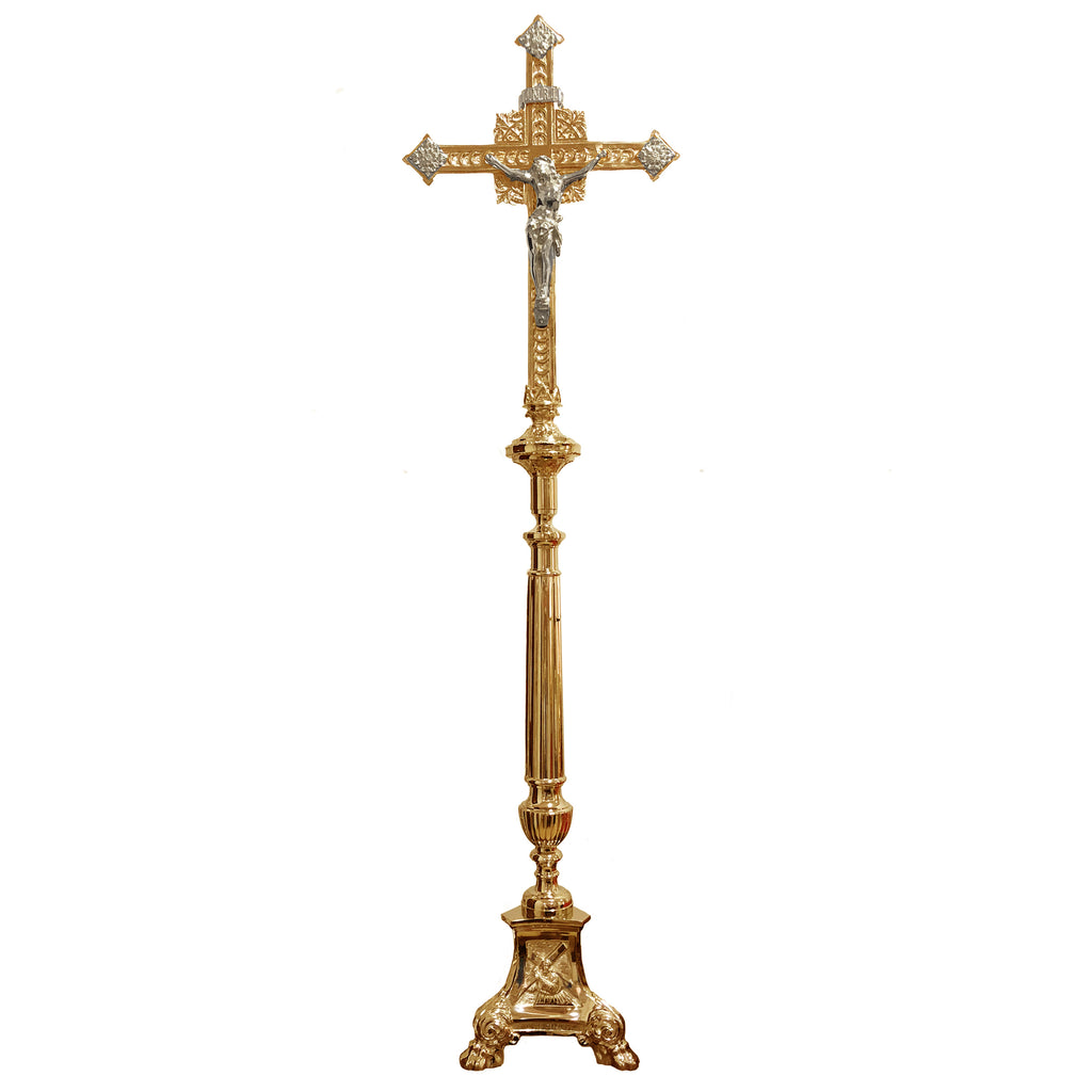 A peça é confeccionada em liga metálica fundida de altíssima qualidade, sendo sua coluna feita em latão, nome dado à liga metálica de cobre e zinco. A estrutura toda é banhada a ouro 24 quilates e a imagem do Crucificado com os detalhes da Cruz são banhados a níquel.