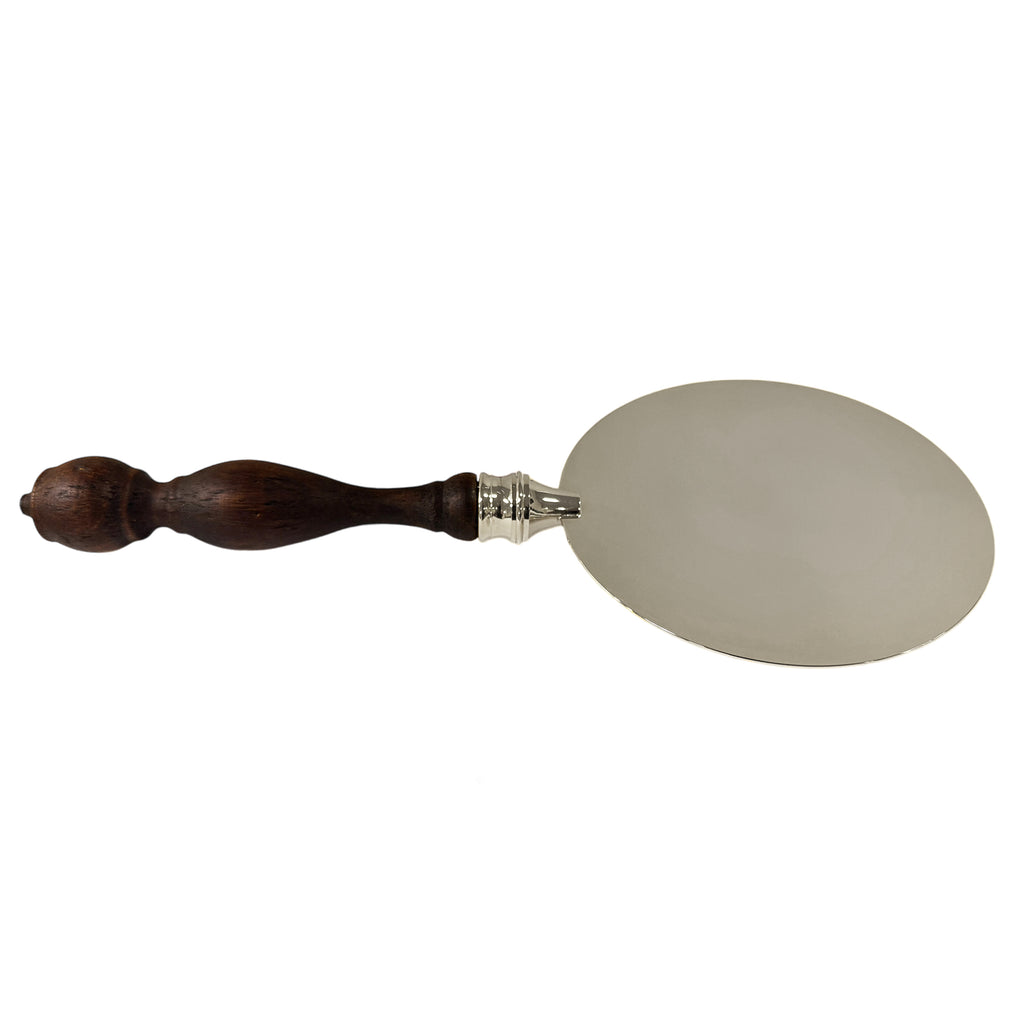 O uso da patena de comunhão tem sido cada vez mais resgatado por comunidades que desejam evidenciar uma maior reverência ao Corpo de Cristo. Nosso modelo é feito com um elegante cabo de madeira. O prato da patena é feito de latão, nome dado à liga metálica de cobre e zinco de altíssima qualidade. Nesta versão, ele é banhado a níquel.