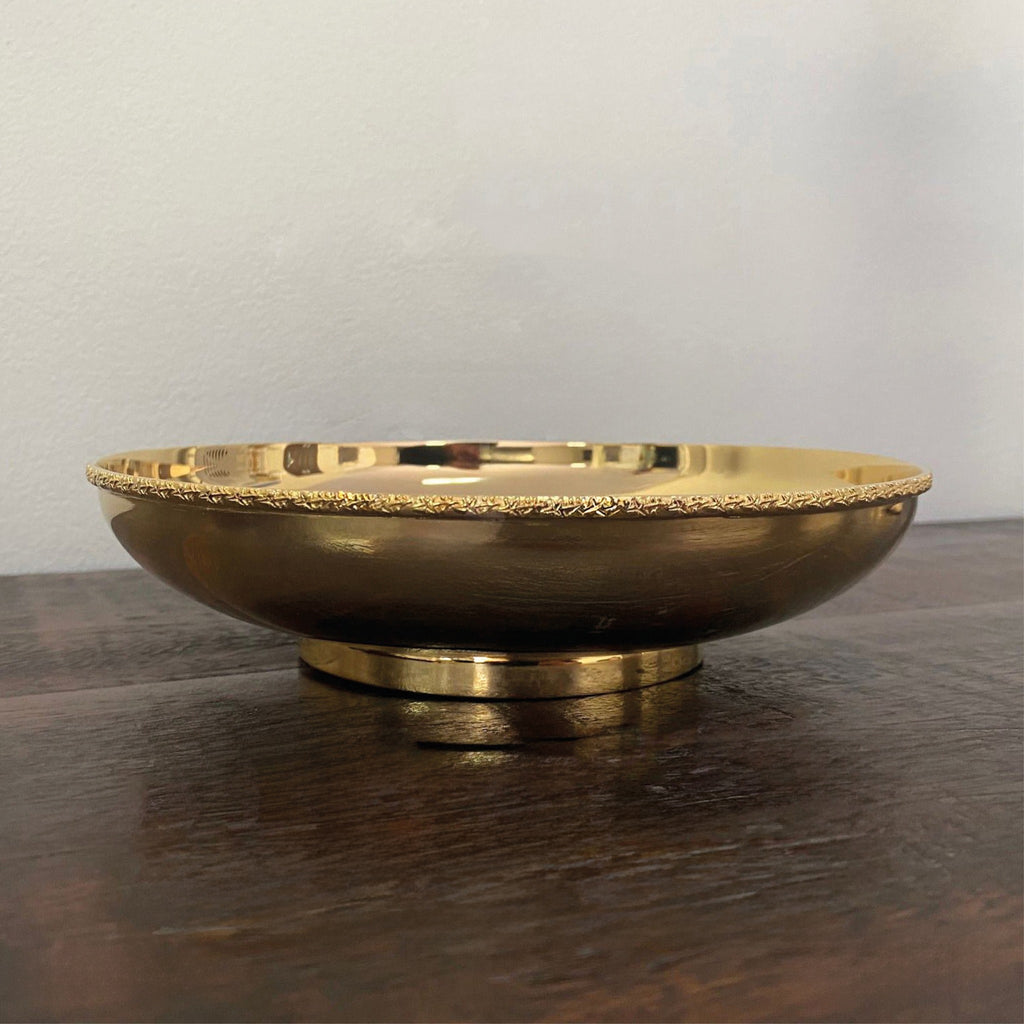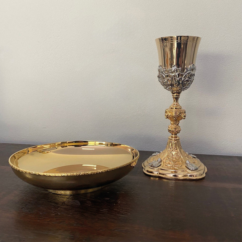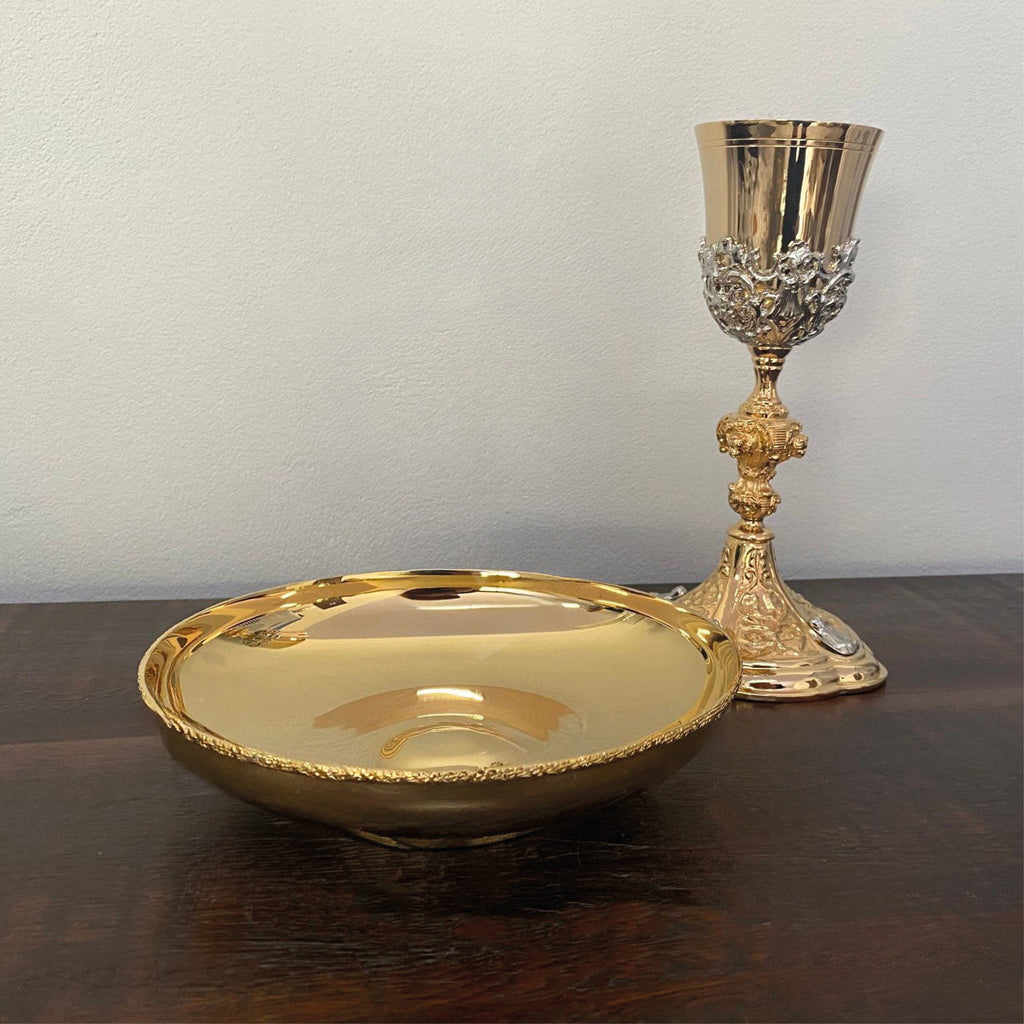 A patena é feita de latão, nome dado à liga metálica de cobre e zinco de altíssima qualidade, e banhada a ouro 24 quilates.