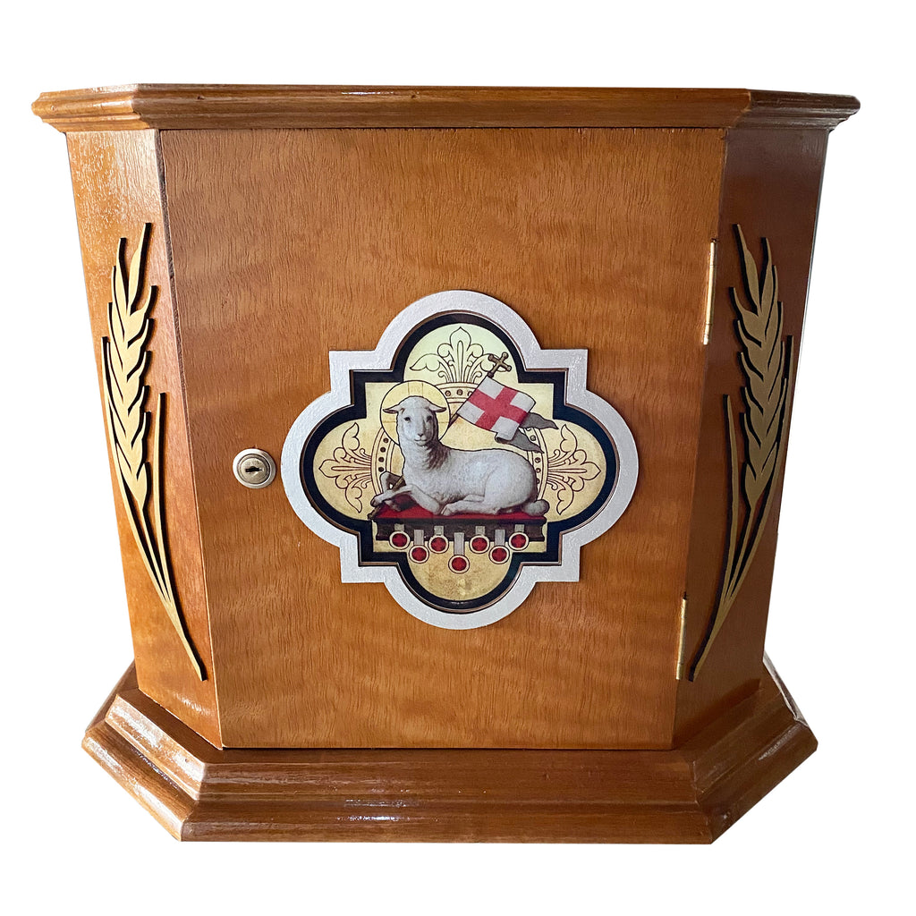 Este sacrário foi desenvolvido para oferecer um espaço digno e seguro para a reserva eucarística, conforme manda a tradição da Igreja. Com estrutura resistente feita em madeira maciça de jequitibá-rosa e interior revestido em metal dourado, é ideal para capelas e comunidades. Seu design valoriza a sobriedade e a sacralidade do ambiente litúrgico, sendo compatível com diversos estilos de altar.