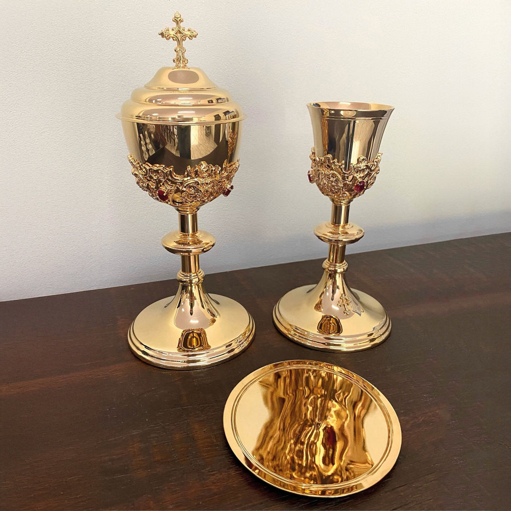 Conjunto de Cálice e Âmbula Santos Mártires banhados a ouro