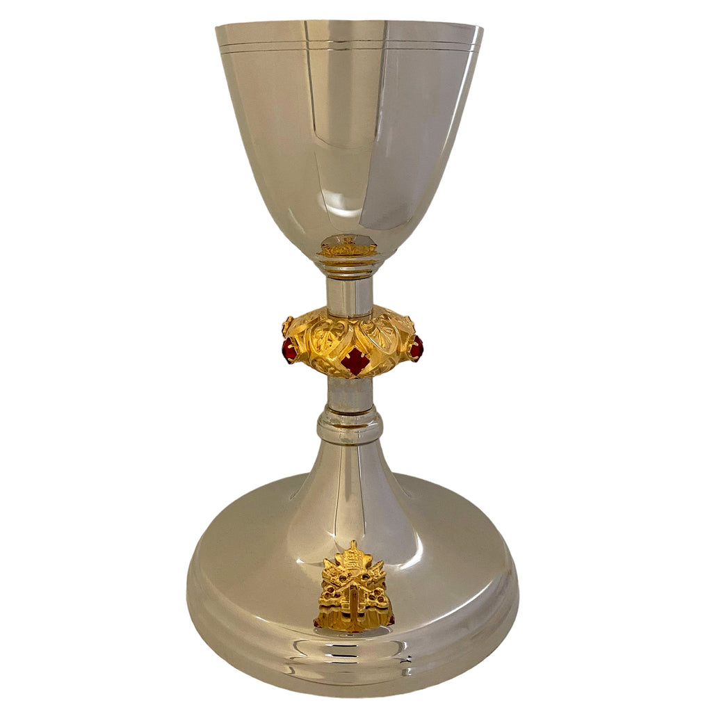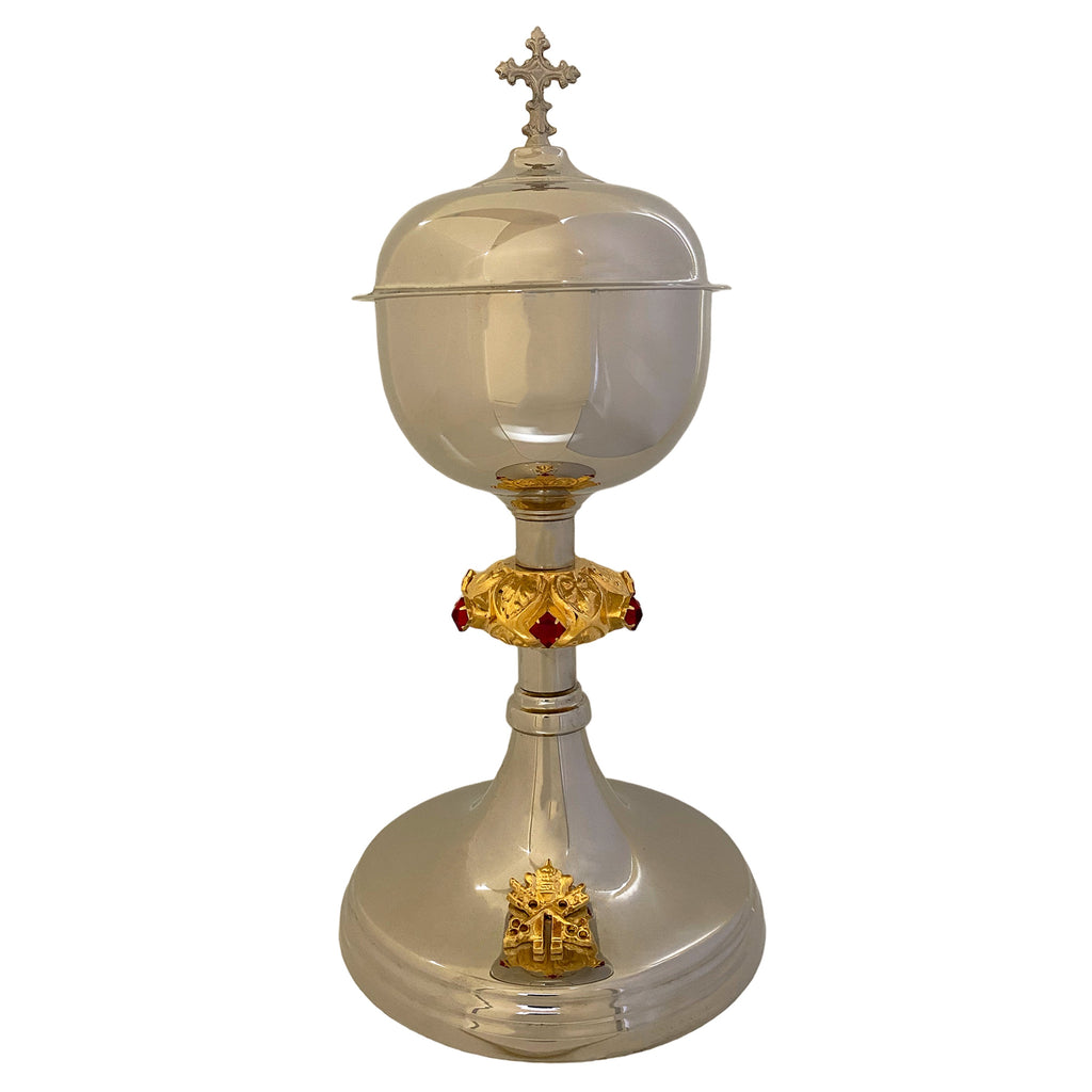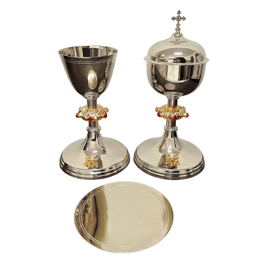 O Cálice e Âmbula São Pedro carregam este nome pois possui, em sua base, as Armas Pontifícias, símbolo do Sucessor de Pedro, o Santo Padre, o Papa. Contam ainda com uma coluna trabalhada com pedras vermelhas e são peças que apresentam excelente custo-benefício.