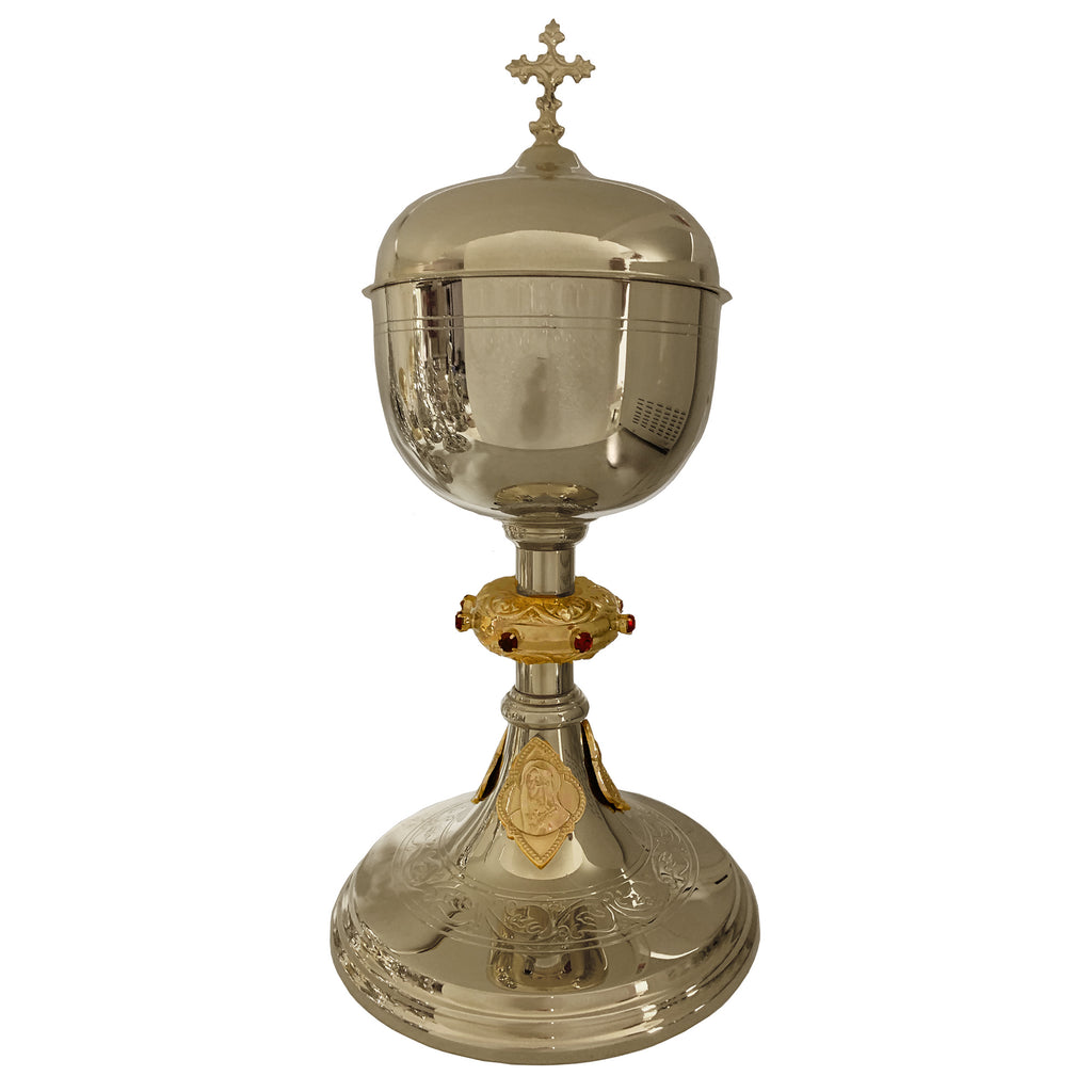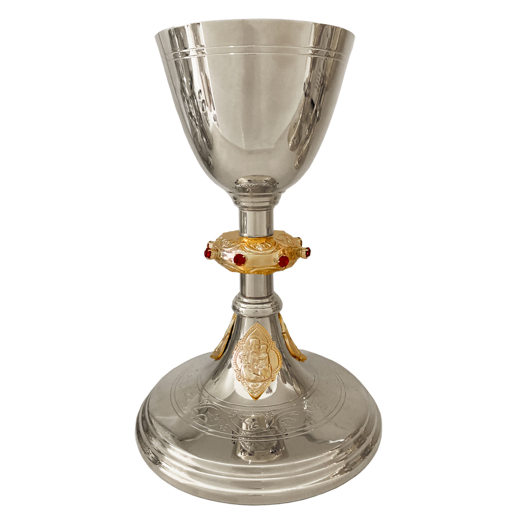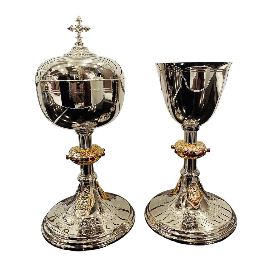 O Cálice e Âmbula T2, ao mesmo tempo que preserva a nobre simplicidade litúrgica, carregam em sua base os medalhões com as imagens do Sagrado Coração de Jesus, Nossa Senhora das Dores e São José. Além disso, possuem uma coluna com o nó todo trabalhado em bela pedraria e a base com um belos arabescos desenhados.